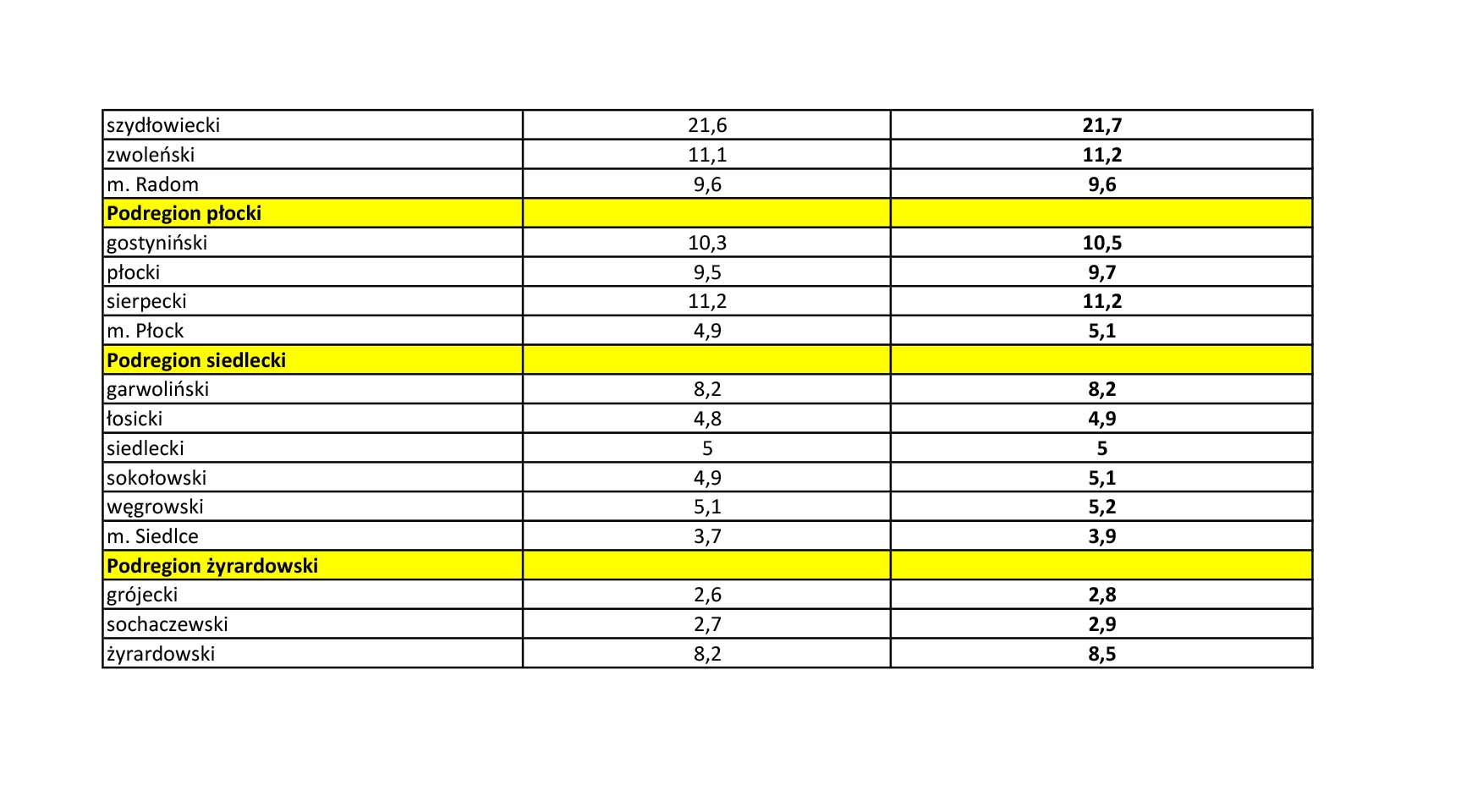 Natomiast najwyższa stopa bezrobocia jest w powiecie szydłowieckim. Wynosi ona 21,7 % (w maju było to 21,6 %).