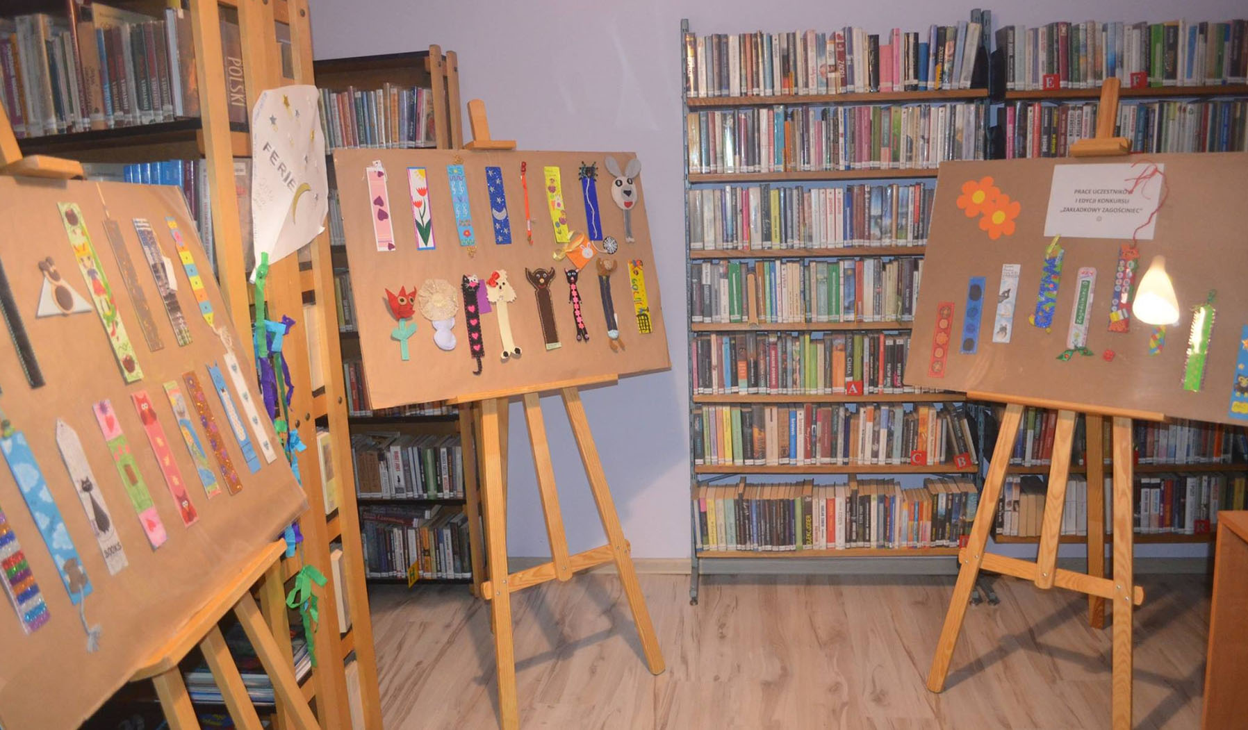 W kameralnych wnętrzach biblioteki w Zagościńcu uczestnicy konkursu z niecierpliwością oczekiwali na wyniki. Jurorzy nie kryją iż wybór był bardzo trudny. Spośród 36 zgłoszeń i 42 prac, jury przyznało trzy wyróżnienia: Dawidowi Grzybowskiemu, Oli Pazio i Filipowi Obidzińskiemu. Wszyscy wykazali się kreatywnością i zaangażowaniem. Każdy uczestnik otrzymał pamiątkowy dyplom i książkę do której można włożyć zakładkę, np. tę autorstwa Dawida Grzybowskiego- ?Czytam bo lubię!!!? którego projekt został wykorzystany do stworzenia naszej bibliotecznej zakładki. Gratulujemy i dziękujemy za tak duże zainteresowanie konkursem, które przeszło nasze najśmielsze oczekiwania.