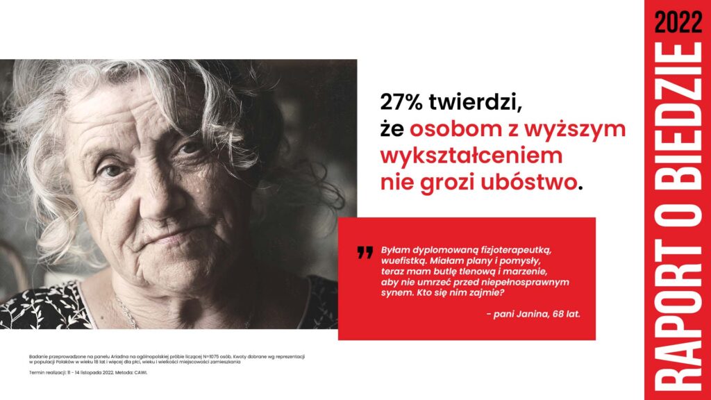 Gdzie zaczyna się bieda? Na to pytanie odpowiadają autorzy najnowszego Raportu o Biedzie, corocznej publikacji przygotowywanej przez Szlachetną Paczkę. Raport zbiera najważniejsze dane oraz historie osób balansujących na granicy przetrwania. Tegoroczna publikacja zawiera także wyniki ogólnopolskiego badania, w którym pod lupę wzięto m.in. stereotypy dotyczące ubóstwa. Wynika z niego, że 15% Polaków nadal uważa, że życie w ubóstwie to wybór, a 31% twierdzi, że wystarczy wziąć się do roboty, żeby z niego wyjść. Raport o biedzie powstał po to, by pokazać, że rzeczywistość bywa bardziej złożona, a inflacja dotyka każdego, ale nie każdy jest na jej dotyk tak samo wrażliwy.