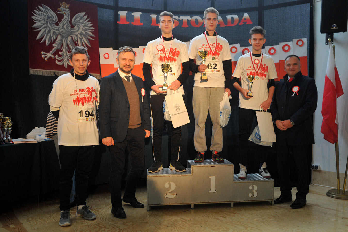 Tuż po godzinie 13.00 rozpoczął się IX Bieg Niepodległości, poprzedzony biegiem uczniów w różnych kategoriach wiekowych. Start i meta znajdowały się pod Gimnazjum Nr 1.