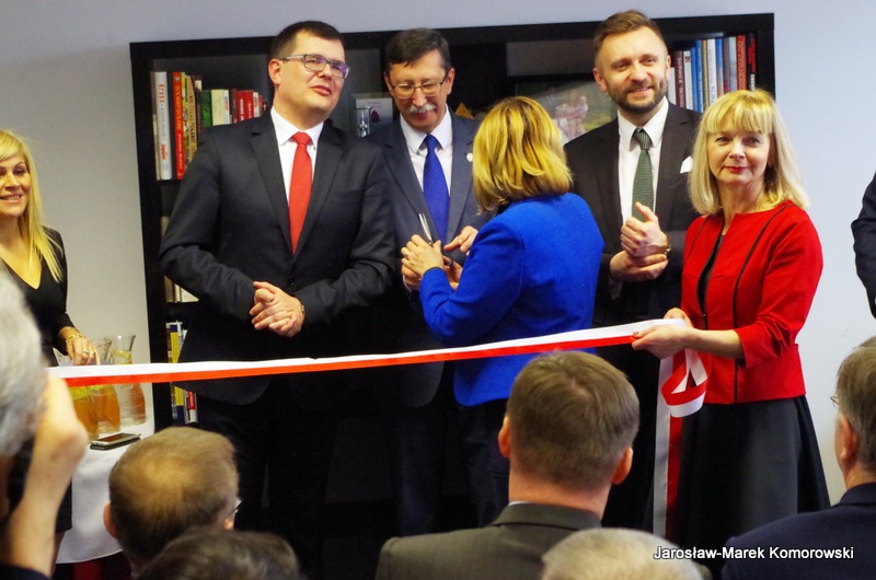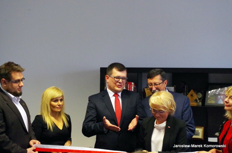 ? Chcemy służyć państwu pomocą. Dla mnie kontakty z samorządem będą jednym z ważniejszych obszarów poselskiej aktywności ? zapewnił. Do symbolicznego przecięcia wstęgi parlamentarzyści zaprosili Roberta Perkowskiego ? burmistrza Ząbek, Jacka Orycha ? burmistrza Marek, Elżbietę Radwan ? burmistrz Wołomina i Marzenę Małek ? radną Sejmiku.