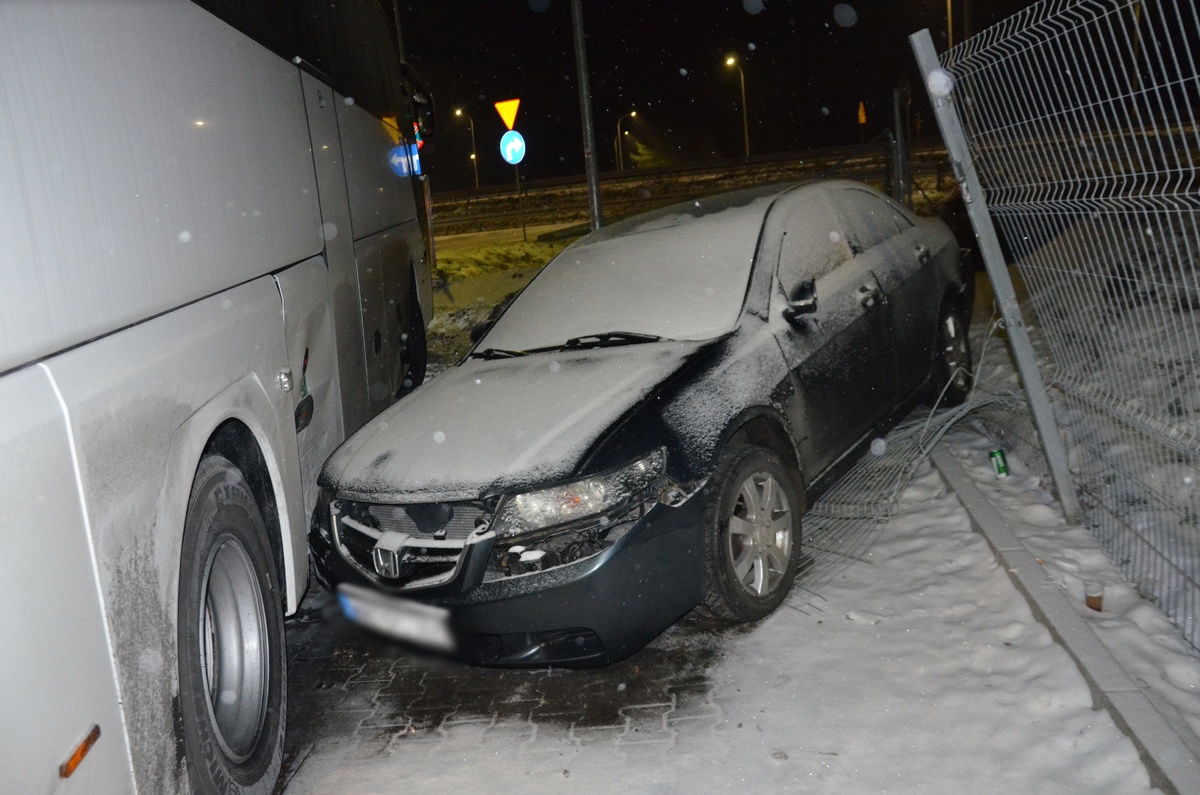 W trakcie wykonywanych czynności okazało się, że to nie wszystko, co 34-latek miał na sumieniu. Chwilę wcześniej, jadąc drogą serwisową trasy S8, nie dostosował prędkości do warunków panujących na drodze, stracił panowanie nad pojazdem, w wyniku czego najpierw uderzył w znak drogowy, a następnie przejechał przez nasyp ziemny i uderzył w ogrodzenie stacji paliw oraz zaparkowany na parkingu autobus. Mężczyzna nie odniósł obrażeń.