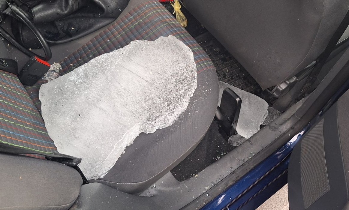 Bryła lodu z samochodu ciężarowego spadła na jadący z naprzeciwka volkswagen. Lód przebił szybę czołową osobówki i zranił w głowę pasażerkę, która z obrażeniami trafiła do szpitala. Kierowca ciężarówki nie zatrzymał się i odjechał z miejsca zdarzenia. Przypominamy, że w przypadku, gdy nieodśnieżony pojazd przyczyni się do spowodowania zagrożenia bezpieczeństwa w ruchu drogowym, a pokrzywdzony odniesie poważne obrażenia – zdarzenie zostanie zakwalifikowane jako wypadek, a sprawca odpowie za przestępstwo z artykułu 177 kodeksu karnego, za które może grozić do 3 lat pozbawienia wolności.