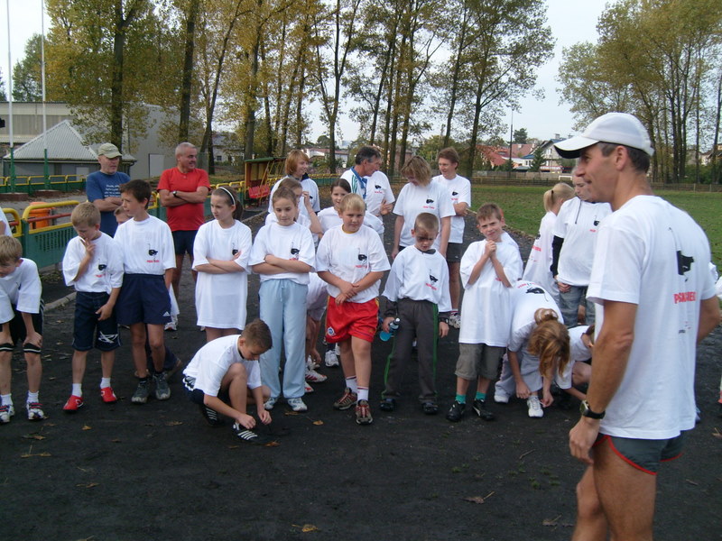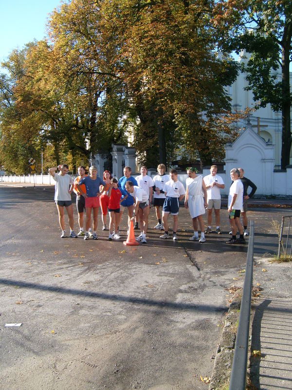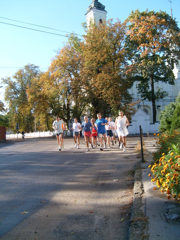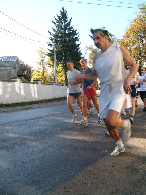 Do biegu przystąpiło 14 osób . Trasę wyznaczała pętla długoąci 2km500m. Pierwszy odcinek wszyscy pokonali w tempie integracyjno-rozruchowym, jednakże już póżniej co wytrawniejsi biegacze dali się ponieść i poczęli się ścigać. Takaż to ich natura . Końcowy finisz dziesięciokilometrowego dystansu rozegrali między sobą Eugeniusz Dembiński i Dariusz Król . A wszystko to w towarzysko-sportowej atmosferze . Niewątpliwą atrakcją biegu był p.Bogusław Myszkiewicz występujący w przeróżnych imprezach biegowych w oryginalnych przebraniach, tym razem wcielając się w olimpijskiego Greka z wieńcem laurowym na głowie .