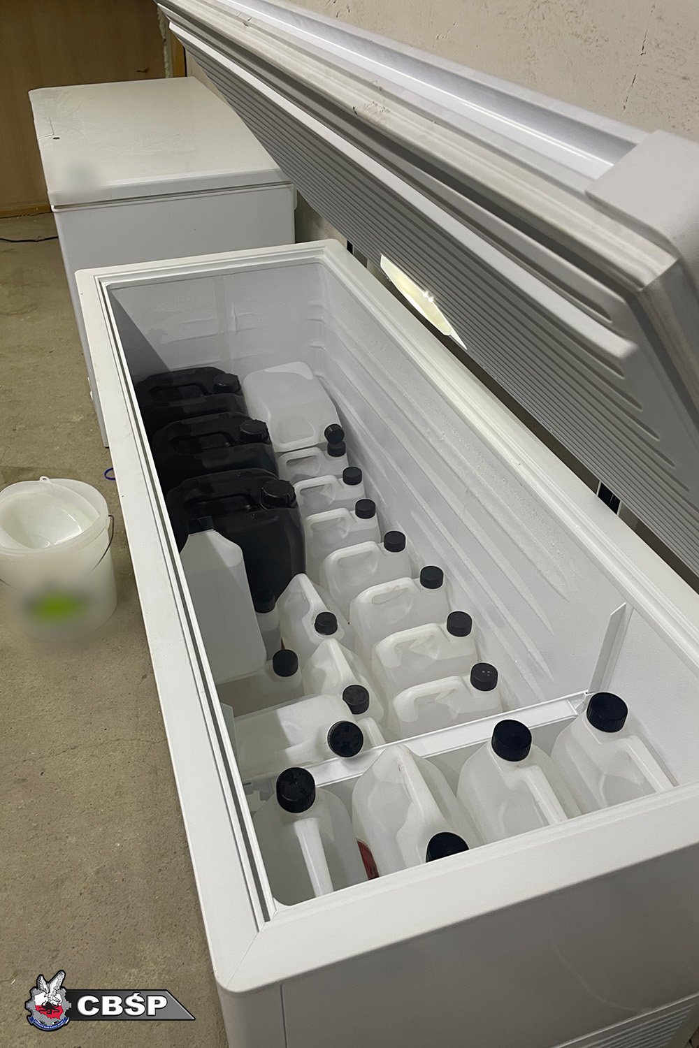 Skala znaleziska była ogromna. Funkcjonariusze zabezpieczyli ponad 700 kilogramów klefedronu w postaci płynnej oraz 70 kilogramów tej substancji w formie skrystalizowanej. Na miejscu zatrzymano dwóch mężczyzn, którzy nadzorowali proces produkcji. Czarnorynkowa wartość zabezpieczonych narkotyków opiewa na kwotę przeszło 4 mln PLN.