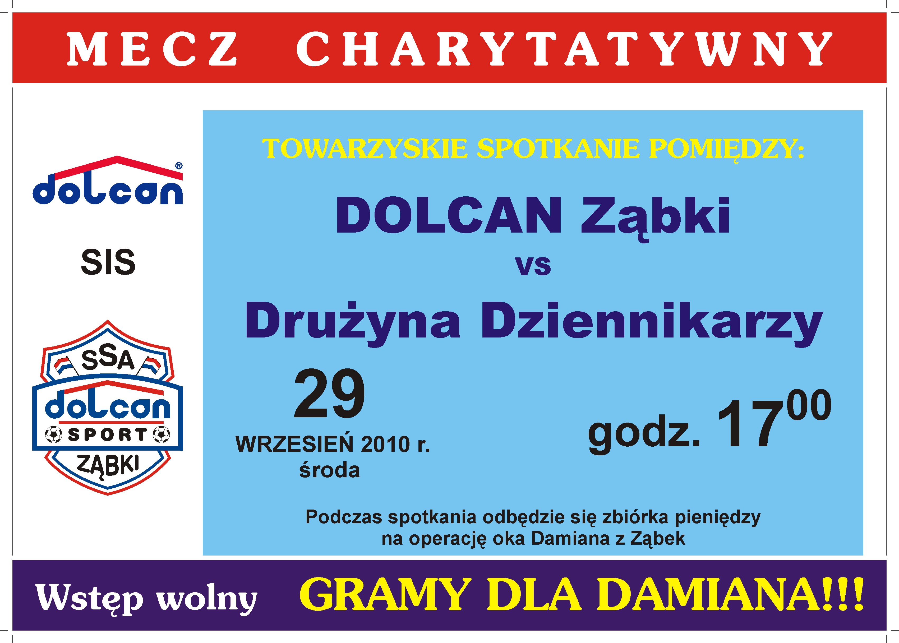 Wydarzenie odbędzie się o godzinie 17.00 na stadionie miejskim w Ząbkach przy ulicy Słowackiego 21(wjazd od ul. Gdyńskiej). Drużyna złożona z piłkarzy i pracowników Dolcan zmierzy się z zespołem dziennikarzy z czołowych polskich redakcji, podejmujących tematy nieruchomościowe, biznesowe i sportowe. Podczas meczu, wśród widzów prowadzona będzie zbiórka pieniędzy na operację Damiana, który wymaga skomplikowanej operacji po uszkodzeniu oka.
