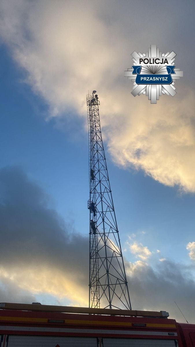 Natychmiastowa reakcja i zdecydowane działanie służb pozwoliło na uratowanie życia mężczyźnie, który chciał skoczyć z masztu radiowego. Desperat stał na krawędzi platformy i groził samobójstwem. W wyniku przeprowadzonych działań oraz rozmów z policyjnymi negocjatorami interwencja zakończyła się sukcesem.