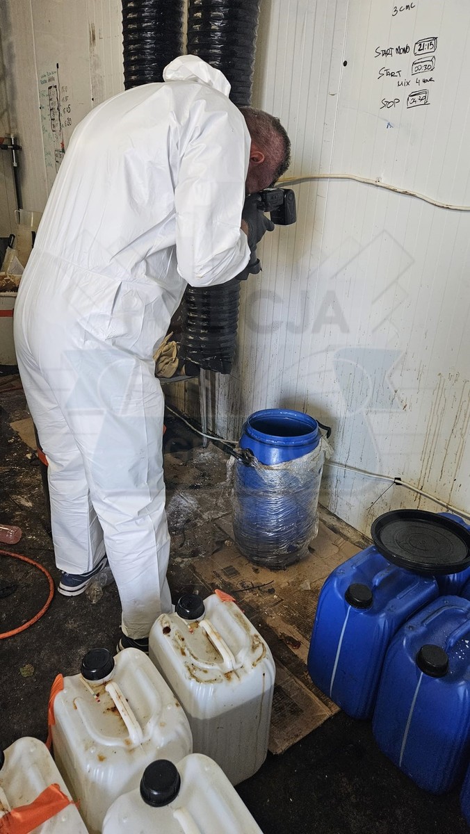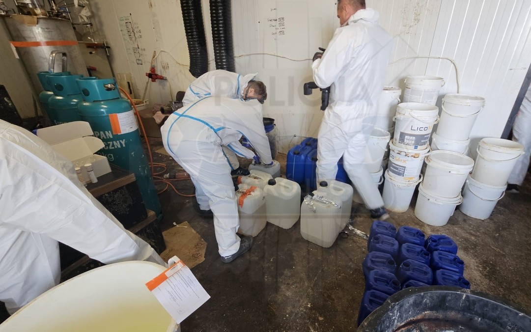 W zaadaptowanym na fabrykę budynku gospodarczym kryminalni znaleźli kompletną linię do produkcji narkotyków. Na miejscu zabezpieczono niemal 140 kilogramów mefedronu, 4 kilogramy amfetaminy i kilkaset gramów marihuany, a także kolejne dziesiątki kilogramów narkotyków w końcowym etapie produkcji oraz trwający proces wytwarzania następnych partii nielegalnych substancji. Przestępcy zostali pozbawieni wielomilionowych zysków z nielegalnej działalności, gdyż wartość tylko gotowych do wprowadzenia na rynek narkotyków to kilka milionów złotych, a kolejne potencjalne milionowe zyski, to środki z będących w trakcie produkcji substancji zabronionych.