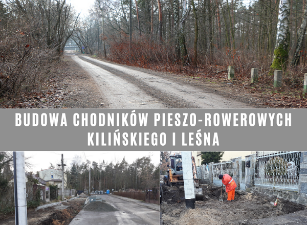 Ruszyły prace przy budowach chodników pieszo-rowerowych w ulicach: Kilińskiego(na odcinku od ul. Staszica do ul. Leśnej) oraz Leśnej, na odcinku od ul. Kilińskiego do ul. Wyszyńskiego.
