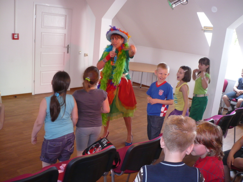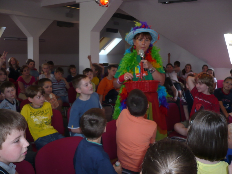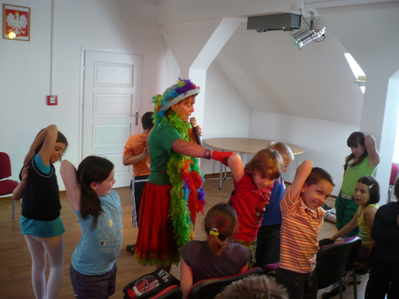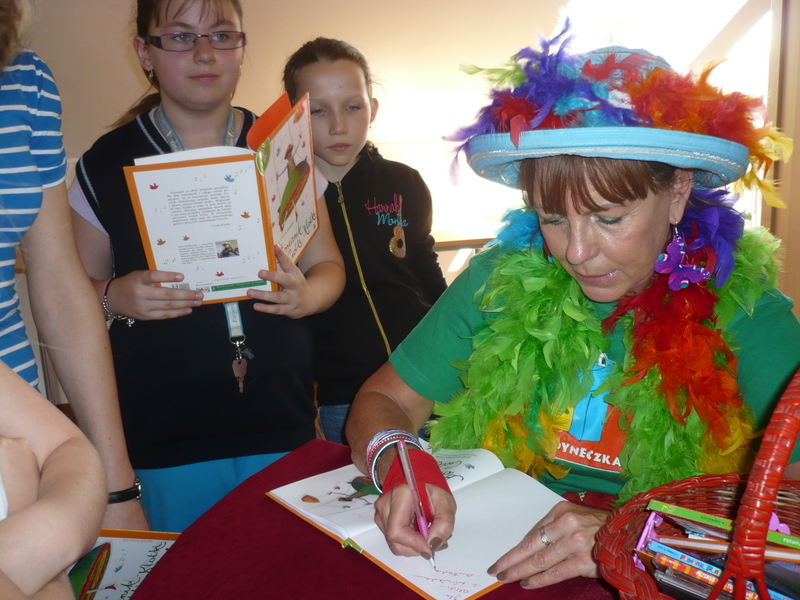 Na spotkanie z autorką, przebraną w strój Ciotki Klotki, przybyły dzieci ze Szkoły Podstawowej nr 3 w Wołominie. Z uwagą wysłuchały opowieści Pani Ewy o tym jak powstają jej piosenki, skąd czerpie pomysły, jak uczyła się rymować pod okiem znakomitej nauczycielki, swojej mamy Wandy Chotomskiej. Opowiadała również o pracy w telewizji przy tworzeniu edukacyjnych programów dla dzieci. Opowieści przeplatała zagadkami i swoimi piosenkami, które dzieci wraz z nią śpiewały. Na koniec dzieci otrzymały autografy i pozowały do wspólnych , pamiątkowych zdjęć z Ciotką Klotką.