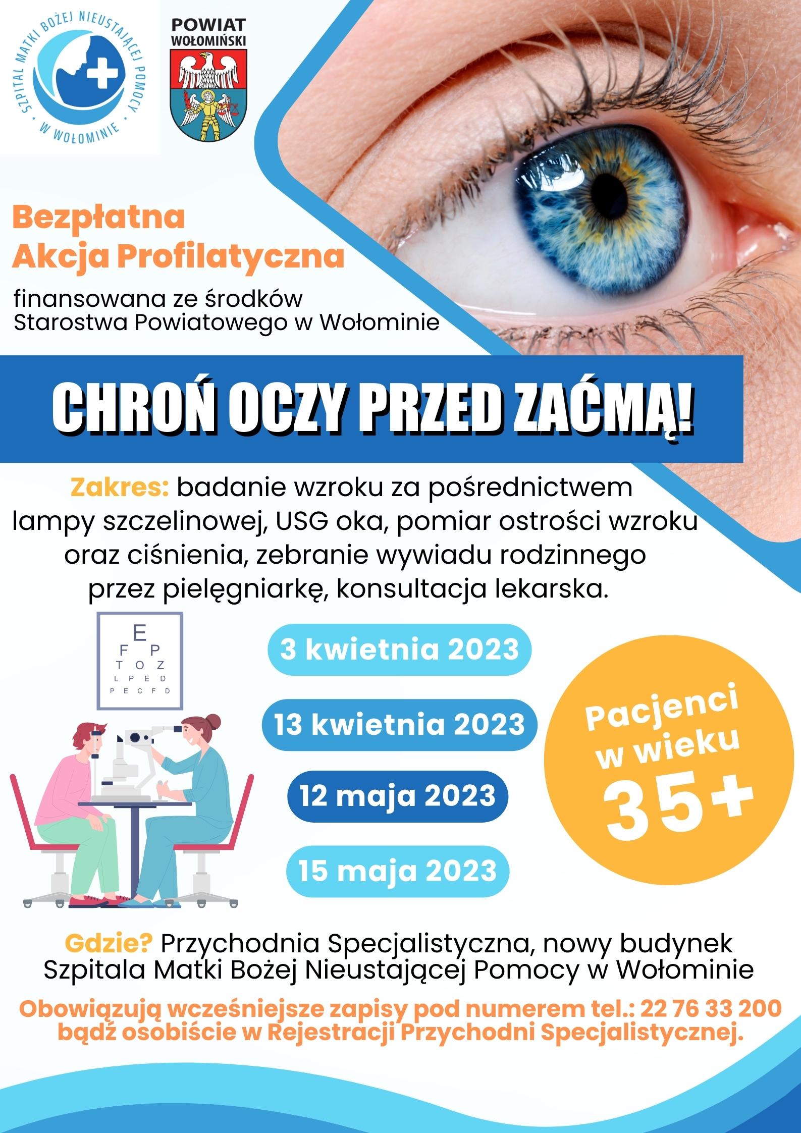 Bezpłatna akcja profilaktyczna w Przychodni Specjalistycznej Szpitala Matki Bożej Nieustającej Pomocy w Wołominie, finansowana ze środków Powiatu Wołomińskiego.