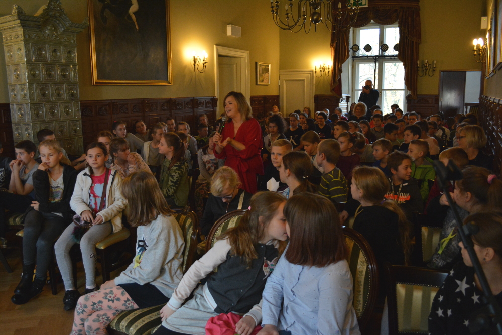 O godz.10.00?rozpoczęło się spotkanie dzieci z aktorką teatralną i filmową, realizatorką audiobooków ? Edytą Jungowską. Dzieci, aktywnie uczestniczyły w programie, chętnie podejmowały dialog, a w finale nagrodziły artystkę brawami, prosząc o wspólne zdjęcie. Aktorka, Maja Komorowska, w rozmowie z Tadeuszem Sobolewskim, przedstawiła uczniom fragmenty ?Pamiętnika