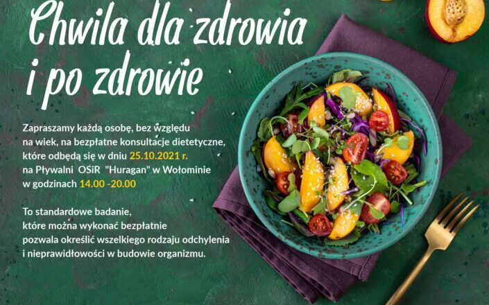 Bezpłatne konsultacje dietetyczne  odbędą się w dniu 25.10.2021 r. (poniedziałek) na Pływalni OSiR ?Huragan? w Wołominie w godzinach 14.00 ? 20.00