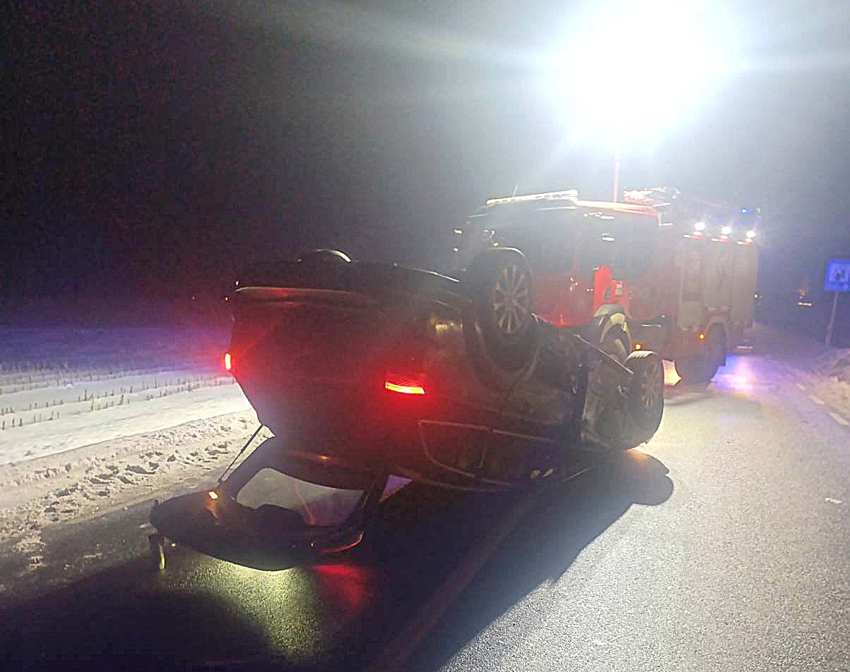 Na DW632 Opel wypadł z drogi i przewrócił się na bok. Szokujące ustalenia policji. Kierowca miał blisko 2,4 promila .