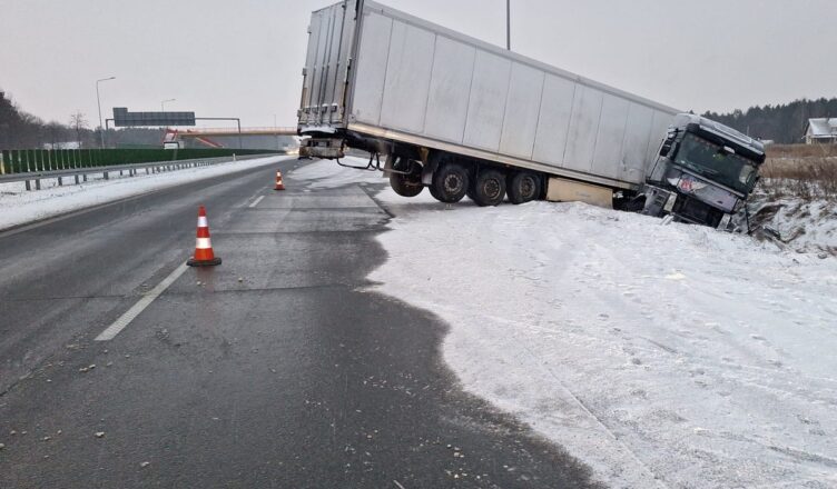 Około godziny 6:00 na S17 w Józefowie (gm. Górzno) ciężarówka wpadła w poślizg i zjechała do rowu, częściowo blokując jezdnię. Policja apeluje o ostrożność po nocnych opadach śniegu i trudnych warunkach na drogach.