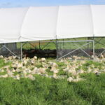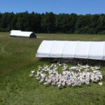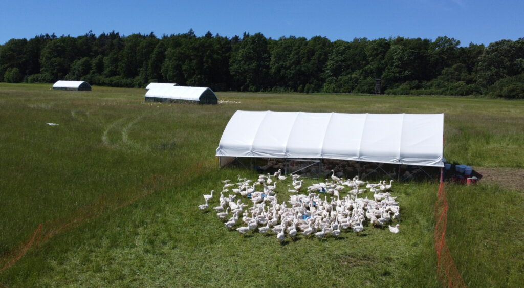 Wyobraź sobie piękne, rozległe i zielone pastwisko o powierzchni 42 ha. To właśnie to zielone pastwisko we wsi Nowolesie jest domem dla kurczaków oraz gęsi, kaczek, perliczek, którym zapewniamy możliwie najlepsze warunki bytowe. Codziennie przesuwamy mobilne kurniki na łące ze świeżą trawą, po to, żeby mogły ją skubać, biegać beztrosko i wykopywać robaki. Nasze ptaki żyją zgodnie ze swoim zegarem biologicznym, mają dostęp do słońca za dnia i możliwość długiego odpoczynku w nocy.