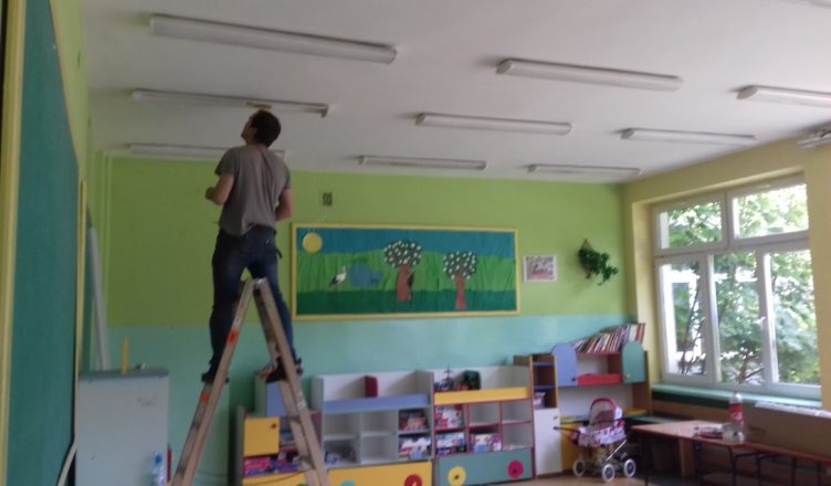 1. MODERNIZACJA I TERMOMODERNIZACJA BUDYNKU ZESPOŁU SZKOLNO ? PRZEDSZKOLNEGO W URLACH ? ETAP II obecnie prowadzone są prace związane z wymianą źródeł światła i docieplenie posadzki w piwnicy.