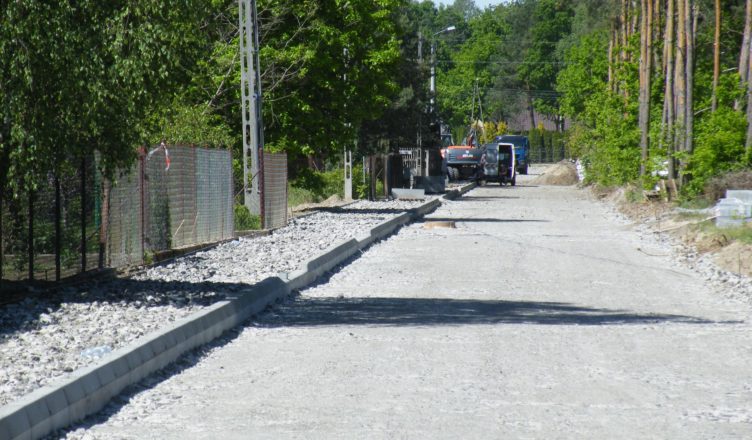 Na budowa ul. Mroza w Borzymach zakończono już wykonywanie koryta pod podbudowę drogi, wykonano nowy przepust pod koroną drogi, ustawiono krawężniki, wykonano podbudowę drogi oraz chodnika.