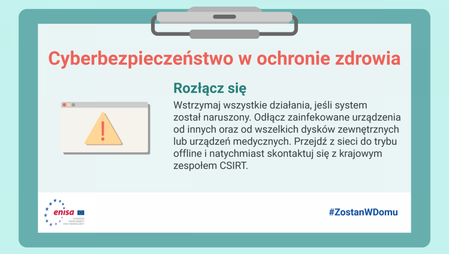 Agencja ENISA, w oparciu o rozwój sytuacji i najpowszechniejsze incydenty, jakie obserwowano od początku pandemii, rekomenduje sektorowi medycznemu: