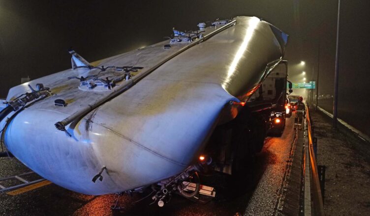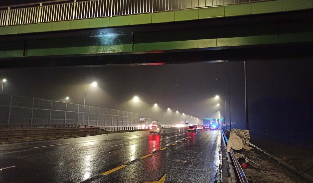 Około godziny 19:30 do Stanowiska Kierowania Komendanta Powiatowego PSP w Wołominie wpłynęło zgłoszenie o zderzeniu naczepy samochodu ciężarowego z elementem wiaduktu. Po dojeździe na miejsce wołomińskich strażaków potwierdzono zdarzenie. Samochód ciężarowy stał na pasie zjazdowym na Zielonkę, ok 100 metrów od kładki w którą uderzył podniesiony silos. Część zbiornika, która oderwała się po uderzeniu znajdowała się na poboczu. Działania strażaków polegały na zabezpieczaniu miejsca zdarzenia do czasu przybycia służby drogowej.
