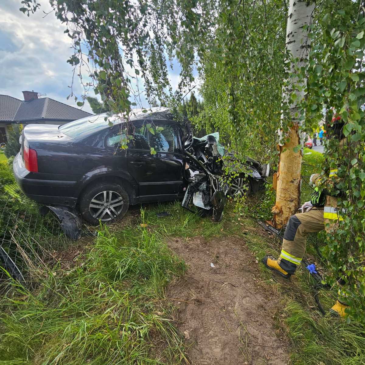 28-letni kierujący volkswagenem zjechał z drogi, uderzył w drzewo a następnie w ogrodzenie. Kierowca w stanie nieprzytomnym trafił do szpitala