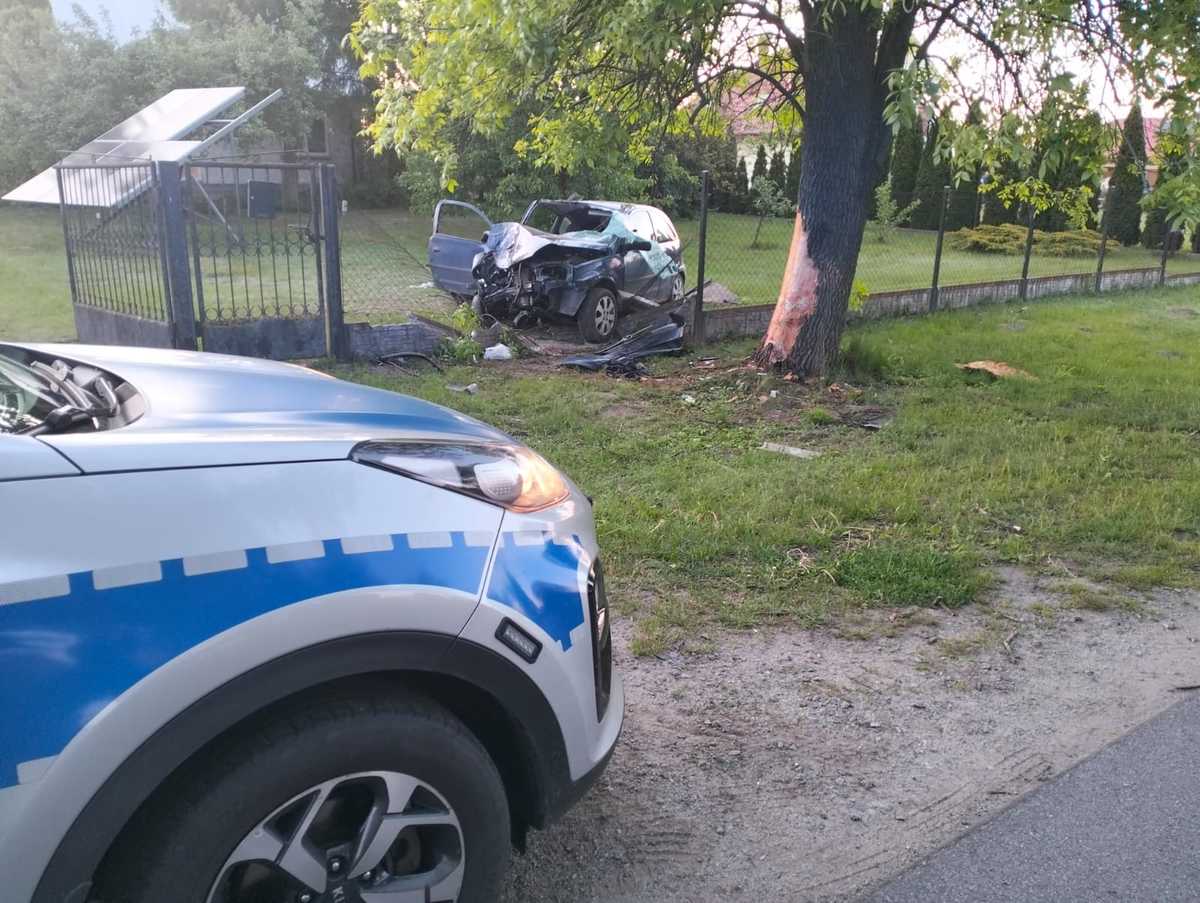 64-letni kierujący oplem zjechał na przeciwległy pas ruchu, a następnie uderzył w drzewo. Mężczyzna najprawdopodobniej zasnął za kierownicą. 95-letnia pasażerka pojazdu zginęła na miejscu. W wyniku poniesionych obrażeń zarówno kierujący jak i 57-letnia pasażerka trafili do szpitala.