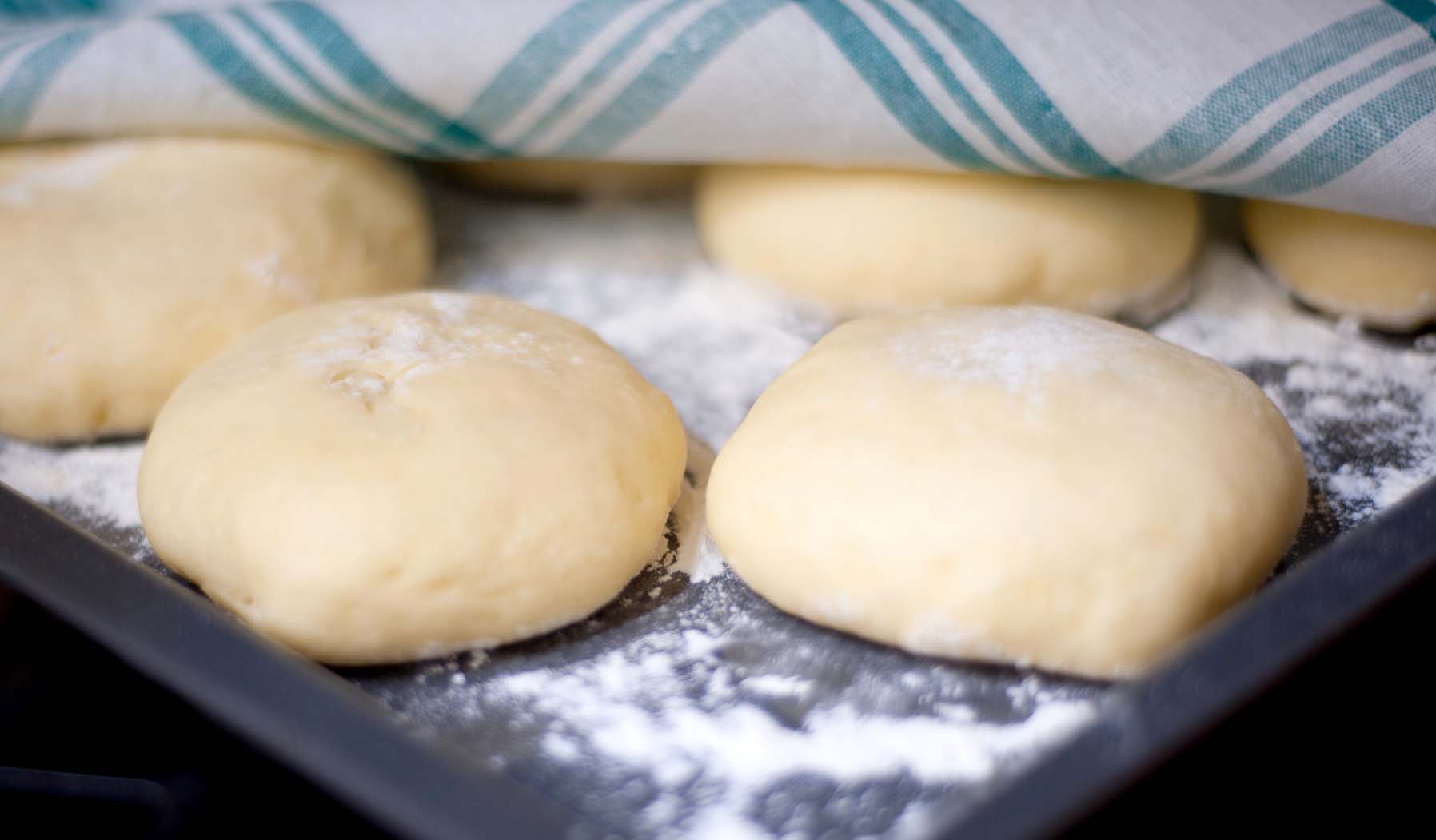 Wyrośnięte ciasto dzielimy na niewielkie kawałki, nakładamy nadzienie i formujemy pączki owijając nadzienie ciastem. Pączki układamy na blasze posypanej mąką, spłaszczamy i ponownie odstawiamy do wyrośnięcia (powinny zwiększyć objętość dwukrotnie).