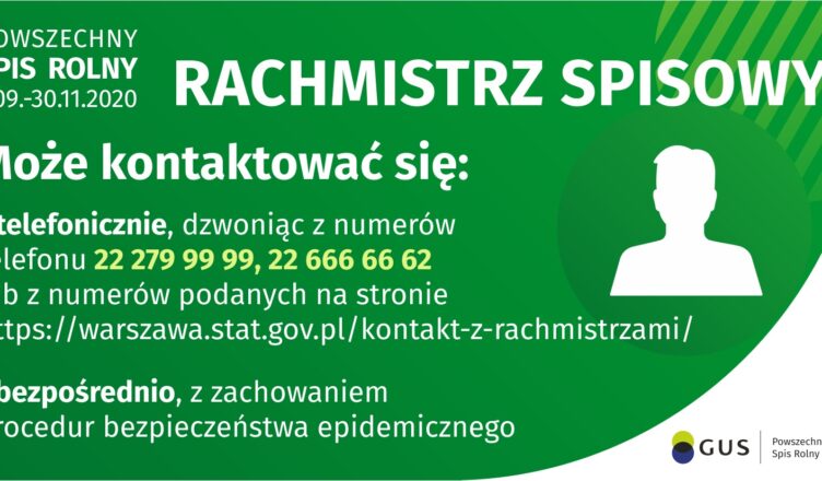 W odpowiedzi na zapotrzebowanie zgłaszane przez rolników, a także gotowość znacznej części rachmistrzów do pracy w terenie w trudnych warunkach epidemicznych, od soboty 10 października w gminach na Mazowszu i w całej Polsce będzie możliwość spisania gospodarstwa rolnego podczas wywiadu bezpośredniego. ZACHOWANE BĘDĄ WSZYSTKIE PROCEDURY BEZPIECZEŃSTWA EPIDEMICZNEGO!