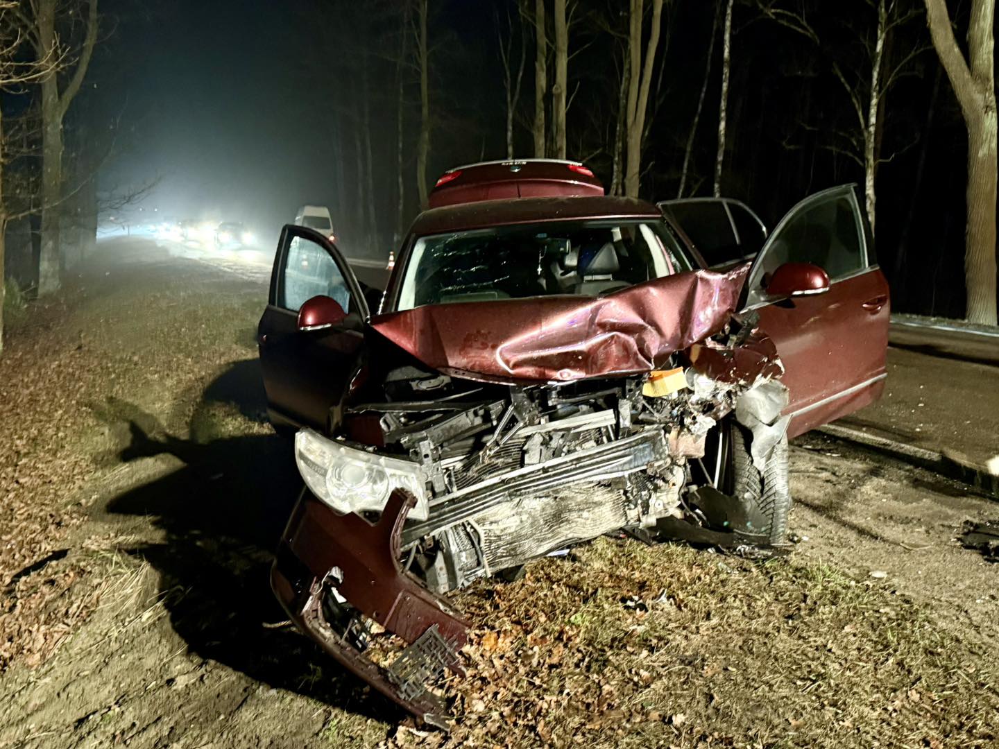 Czołowe zderzenie osobówek na DW631. Sprawca był pijany – miał 2 promile