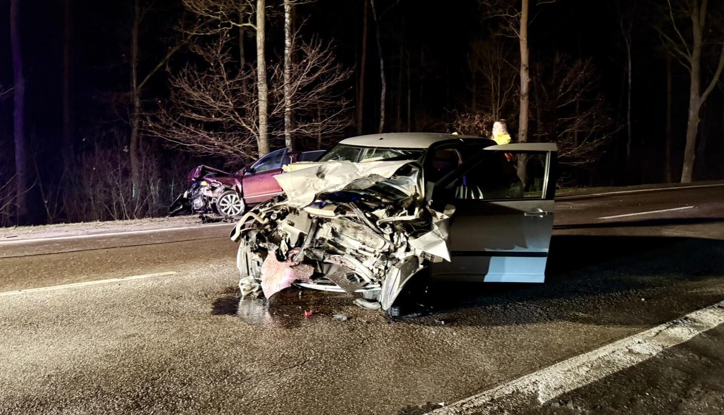 Czołowe zderzenie osobówek na DK92 – cztery osoby trafiły do szpitala