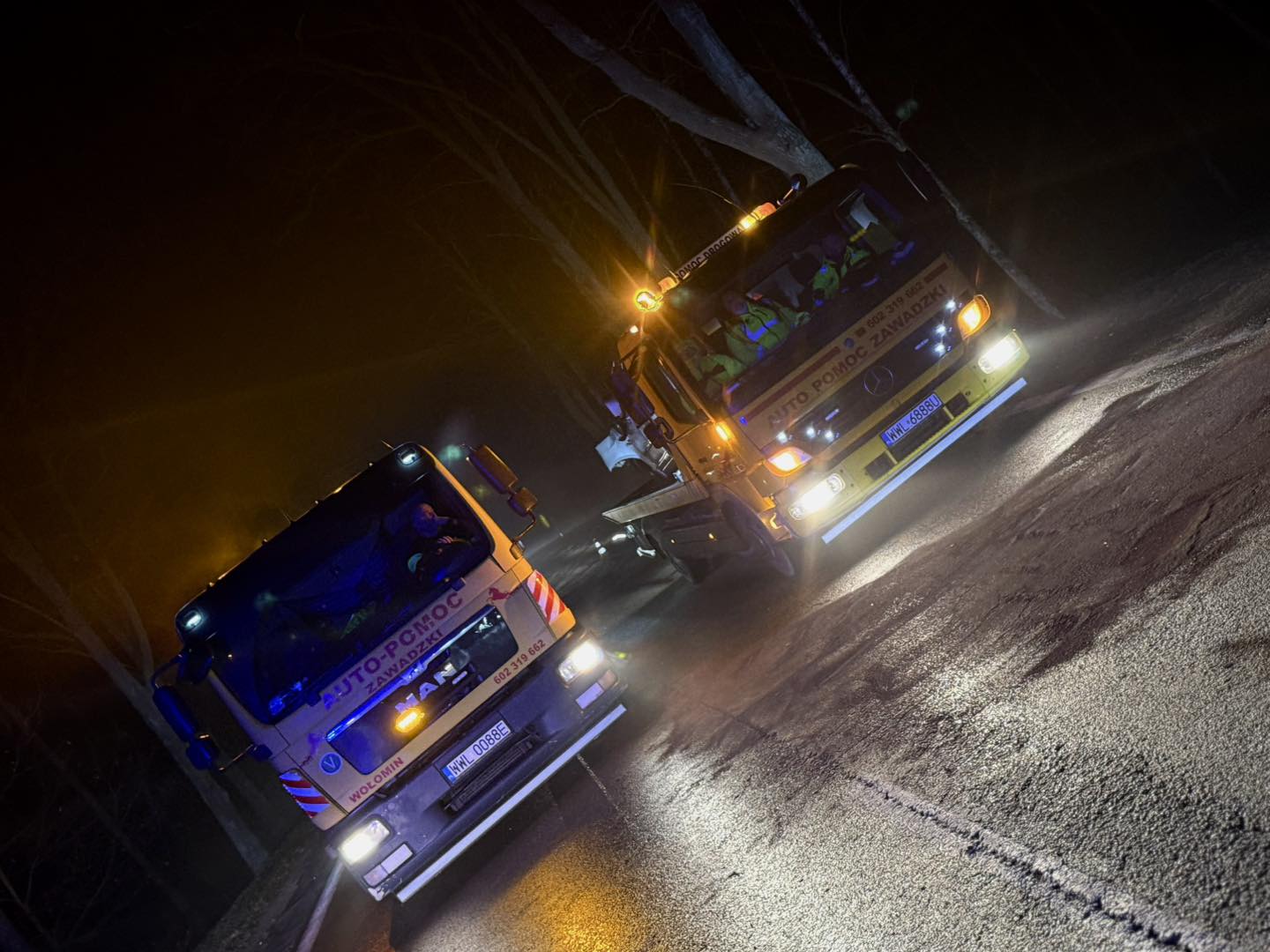 Na miejsce wypadku została wezwana niezawodna firma AUTO-POMOC ZAWADZKI KRZYSZTOF . Działania drogowe prowadziła w podwójnej obsadzie dwóch pojazdów specjalistycznych. Droga na czas usuwania pojazdów była zablokowana.