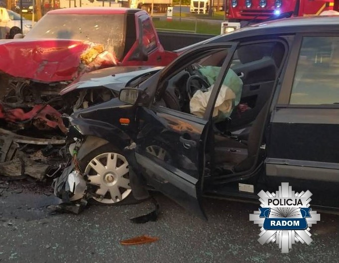 Oficer dyżurny Komendy Miejskiej Policji w Radomiu ok. godz. 19.30 otrzymał zgłoszenie dotyczące wypadku na ulicy Słowackiego. Jak wynika ze wstępnych ustaleń, 67-letni kierujący pojazdem marki Ford jadąc w kierunku Skaryszewa z niewyjaśnionych przyczyn zjechał na przeciwny pas ruchu i doprowadził do zderzenia z pojazdem marki Chevrolet, którym kierował 33-latek.