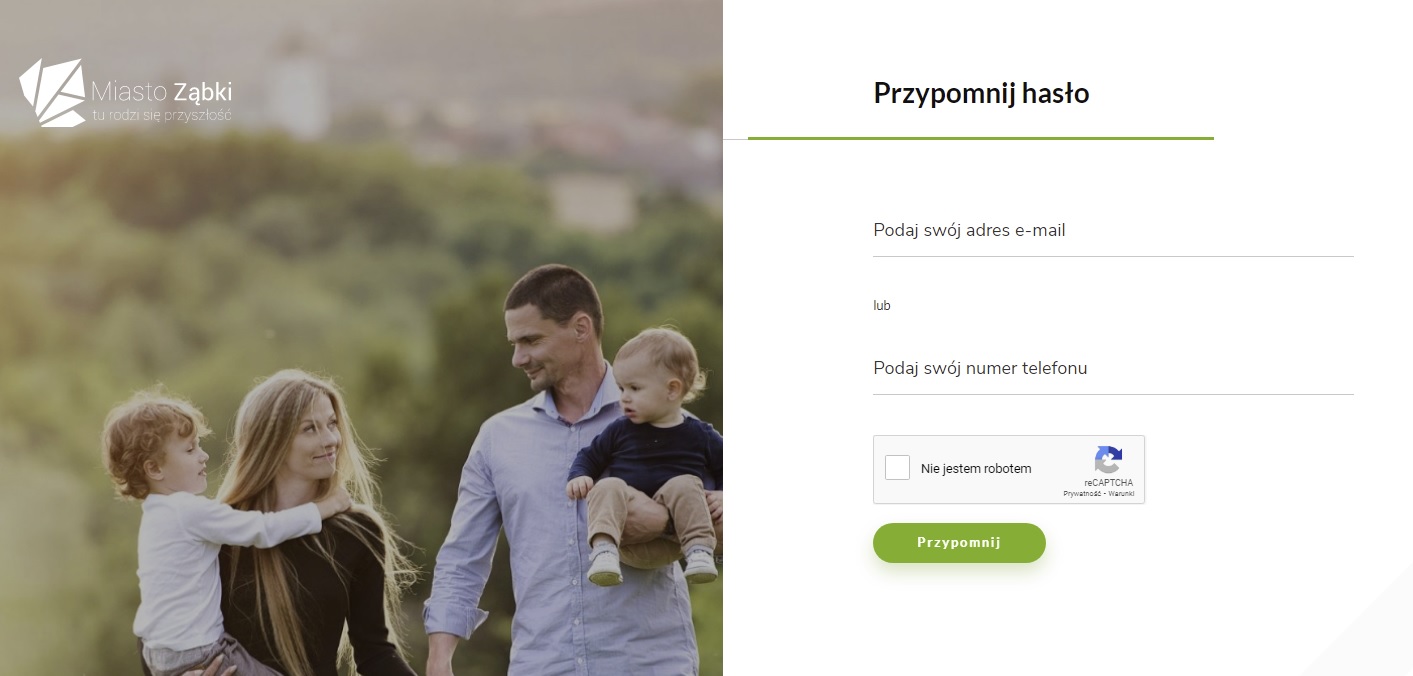 W przypadku osób, które składały wnioski przez internet odpowiedź jest oczywista, ale w przypadku osób, które składały wnioski papierowe w urzędzie i którym konto w systemie utworzył urzędnik nie jest to takie oczywiste. Loginem do konta jest adres email lub numer telefonu komórkowego jaki został wpisany na wniosku o dołączenie do ?Programu Karta Mieszkańca Jestem z Ząbek? i wydanie karty fizycznej. Urzędnik, zakładając wprowadzając daną osobę do systemu założył jej również konto, dla którego wygenerował hasło losowe, którego nikt nie zna. Jednak osoba, która ma dostęp do skrzynki email lub telefonu komórkowego których dane były na wniosku może sobie te hasło zmienić na własne.