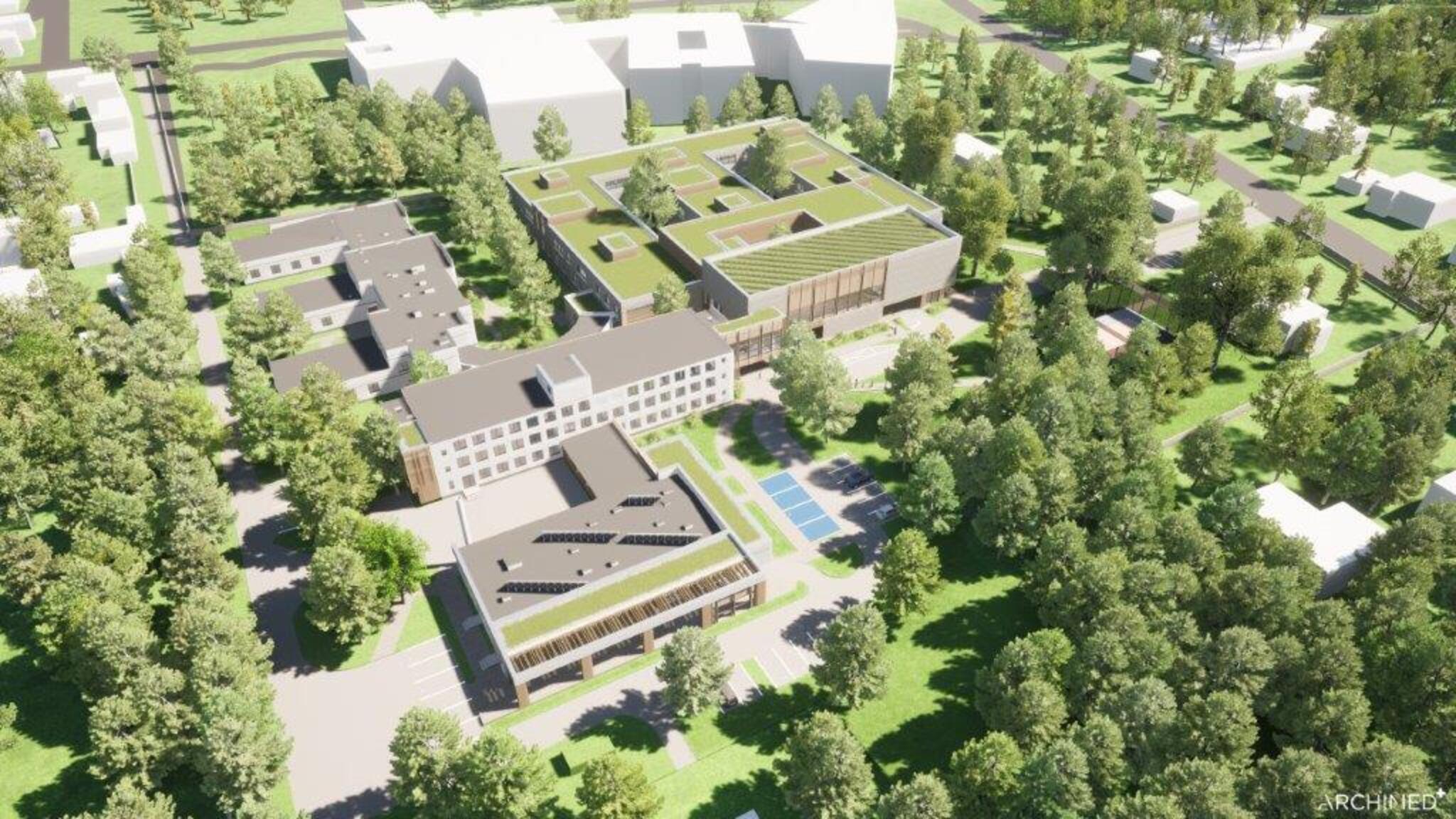 Nowy budynek będzie miał około 12 257 m2 powierzchni. Został zaprojektowany wokół trzech wewnętrznych patiów, które doświetlają jego wnętrze naturalnym światłem. Nowe przestrzenie zyskają oddział psychiatryczny dla dzieci oraz szkoła przyszpitalna. Oddzielne skrzydło zostanie przeznaczone dla niemowląt i ich rodziców. Przebudowę przejdzie również izba przyjęć.