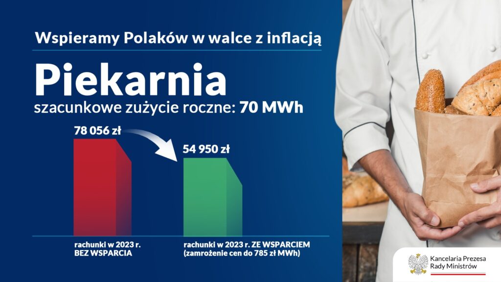 Niewielka piekarnia, która zużywa średnio rocznie 70 MWh musiałaby, według dotychczasowych cen zapłacić rocznie od 78 do 90 tys. zł kosztów energii. Po naszej interwencji będzie to około 55 tys. zł – radykalnie niższa cena!