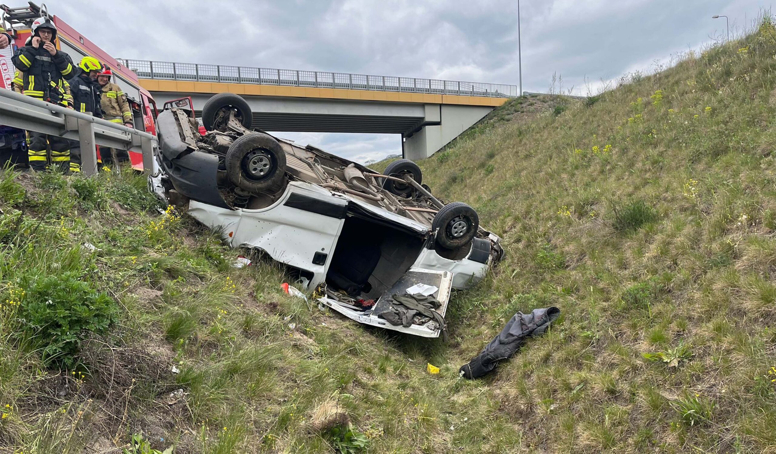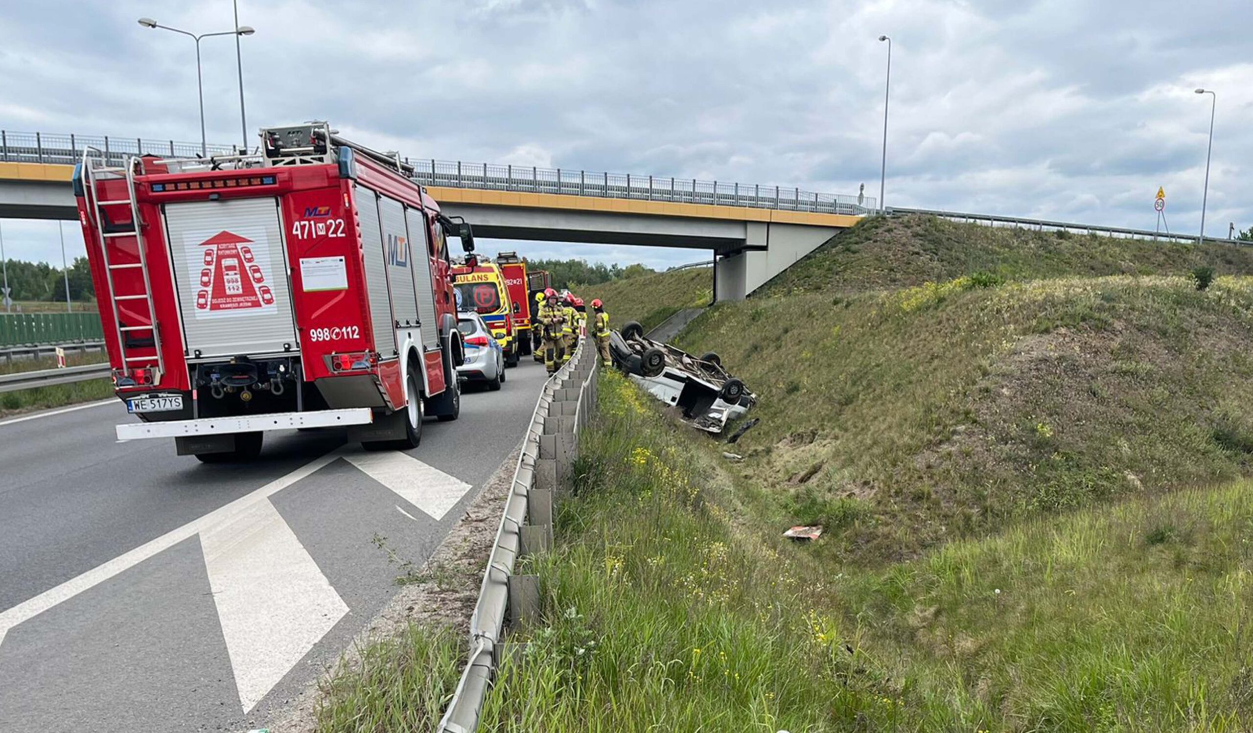 Dachowanie pojazdu na DK50. 19-letni kierujący bez uprawnień, po użyciu alkoholu