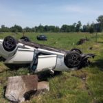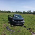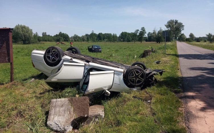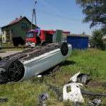 Po zderzeniu jeden z pojazdów znajdował się na dachu w rowie natomiast drugi pojazd znajdował się kilkanaście metrów od zdarzenia w łące. Działania straży polegały na zabezpieczeniu miejsca zdarzenia, udzieleniu Kwalifikowanej Pierwszej Pomocy osobie poszkodowanej, odcięciu napięcia w pojazdach jak również na sorbcji płynów eksploatacyjnych, które wyciekły z uszkodzonych pojazdów. Na tym działania straży zakończono.
