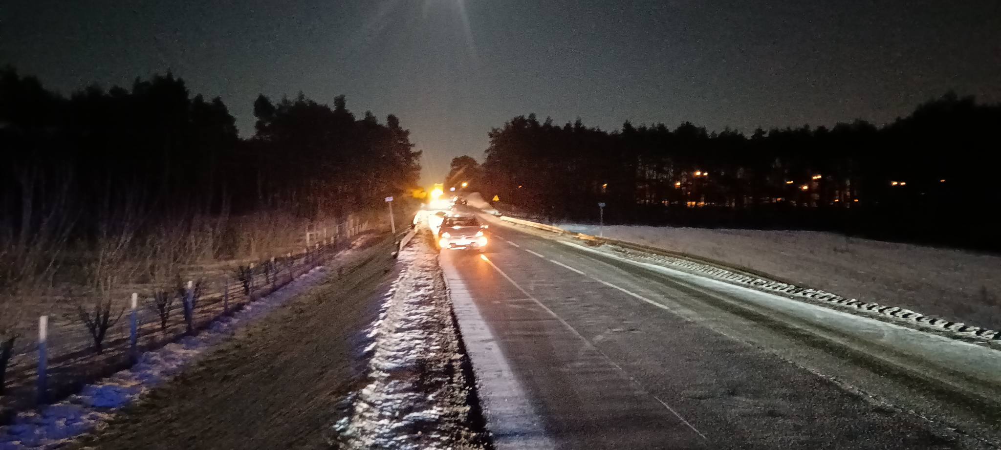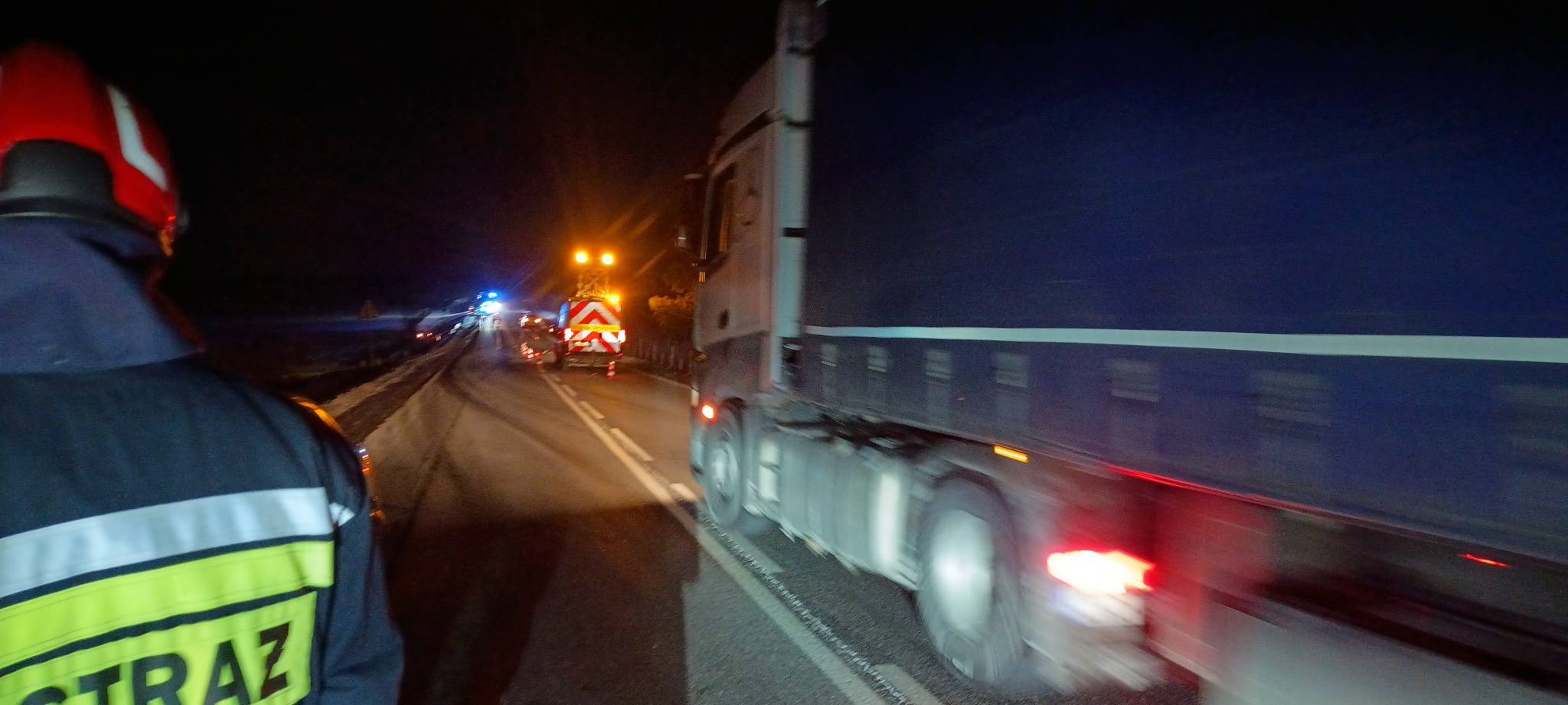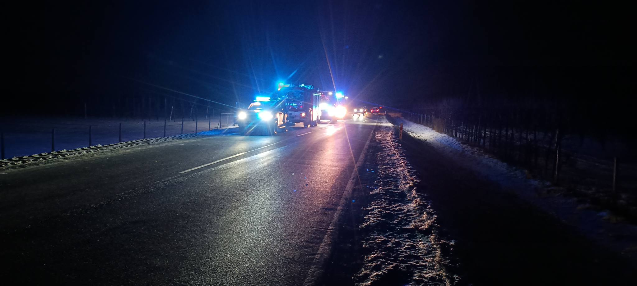 Na miejscu panowały bardzo trudne warunki – noc, ograniczona widoczność oraz śliska nawierzchnia. Droga została zabezpieczona przez służby, ustawiono pachołki oraz wprowadzono działania ratownicze i porządkowe.