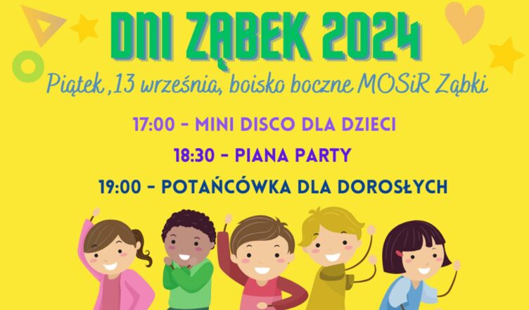 – Mini disco już o godz. 17:00 na bocznym boisku MOSiR Ząbki, przy ul. Słowackiego 21. Następnie, o godz. 18:30 zapraszamy do niezwykłej zabawy podczas PIANA PARTY. Około godz. 19:00 rozpocznie się Potańcówka dla dorosłych. Tak zaplanowany jest pierwszy dzień Dni Ząbek, miejskiej imprezy pod patronatem Małgorzaty Zyśk Burmistrza Miasta Ząbki! – zachęca do wspólnego świętowania ząbkowski ratusz