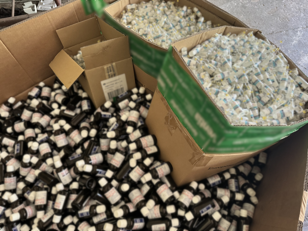 Podczas czynności policjanci i pracownicy Wojewódzkiego Inspektoratu Ochrony Środowiska w Warszawie odkryli przechowywane w kartonach, beczkach i workach – ampułki leków, fiolki suplementów diety oraz blistry z tabletkami niewiadomego pochodzenia, które opisane były cyrlicą.