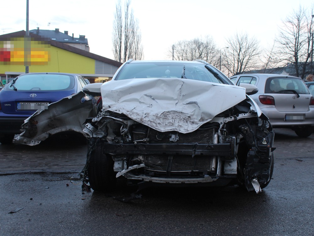 W rejonie skrzyżowania ulic 1 Maja i Prądzyńskiego w Wołominie kierowca toyoty wymusił pierwszeństwo na prawidłowo jadącym drogą z pierwszeństwem bmw doprowadzając do zderzenia pojazdów, dodatkowo jego samochód uderzył w dwa inne pojazdy stojący na pobliskim parkingu. Policjanci zatrzymali 41-latka kierującego toyotą. Badanie stanu trzeźwości wykazało ponad 1,5 promila alkoholu w jego organizmie. Mężczyzna został zatrzymany i trafił do wytrzeźwienia do policyjnej celi. W samochodzie który prowadził był jego 13-letni syn, który został ranny. Obrażenia ciała odnieśli również kierowca i pasażer bmw. Wszystkim poszkodowanym została udzielona pomoc medyczna.