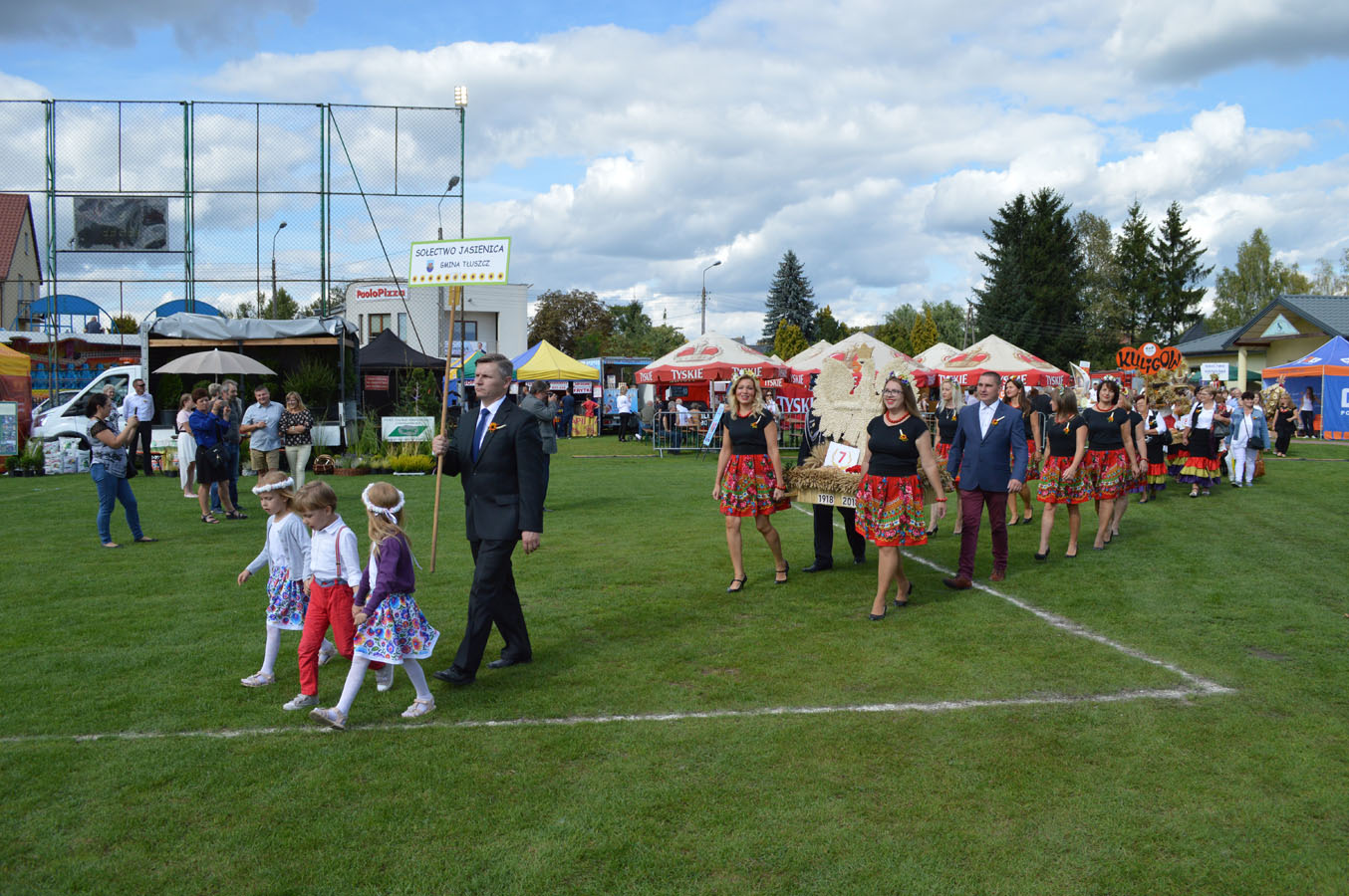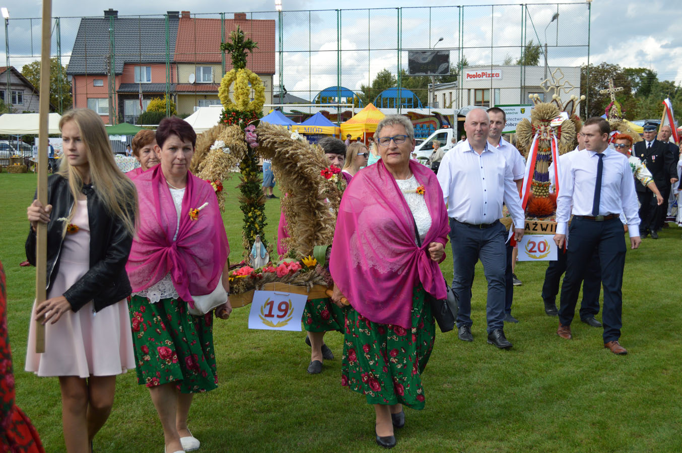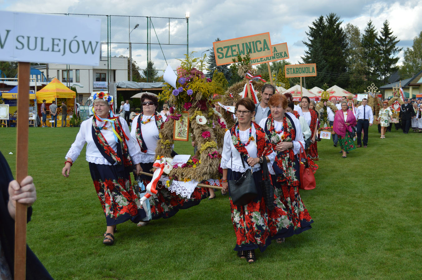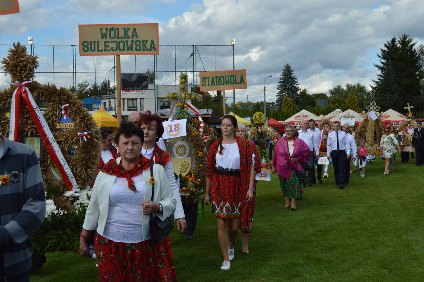 Obchody rozpoczął przemarsz korowodu dożynkowego przy akompaniamencie Młodzieżowej Orkiestry Dętej. W korowodzie przeszli przedstawiciele władz Powiatu Wołomińskiego i Gminy Tłuszcz, Starostowie Dożynek – Anna i Edward Rojeccy, członkowie Klubu Seniora ?Uśmiech Jesieni?, poczty sztandarowe, zaproszeni goście oraz barwne delegacje z wieńcami od Sołectwa Borucza, Koła Gospodyń Wiejskich z Chrzęsnego, Koła Gospodyń Wiejskich z Dąbrówki, Sołectwa Dębe Małe, Sołectwa Jadwisin, Sołectwa Jarzębia Łąka, Sołectwa Jasienica, Towarzystwa Gospodyń Wiejskich Nadbużanki z Kuligowa, Koła Gospodyń Wiejski ?Kalinki? z Miąsego, Sołectwa Postoliska, Koła Gospodyń Wiejskich z Roszczepu, Koła Gospodyń Wiejskich z Równego, Sołectwa Sitki, Sołectwa Sitne, Sołectwa Strachówka, Koła Gospodyń Wiejskich Sulejowianki, Sołectwa Szewnica, Sołectwa Wólka Sulejowska, Sołectwa Starowola, Sołectwa Jaźwie, Sołectwa Dobczyn oraz Koła Gospodyń Wiejskich z Woli Rasztowskiej.