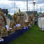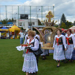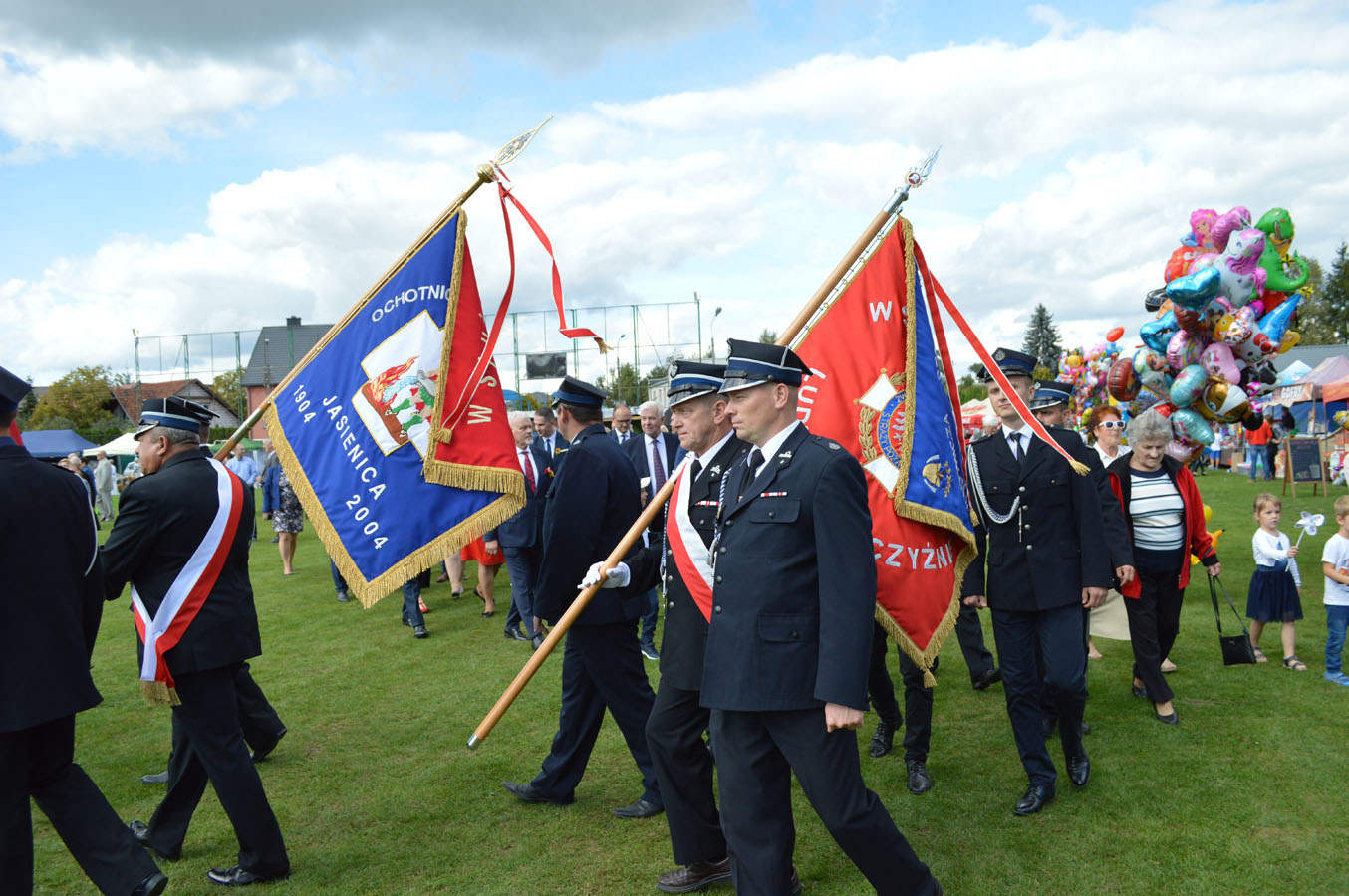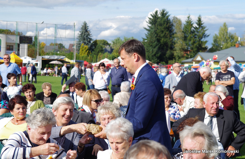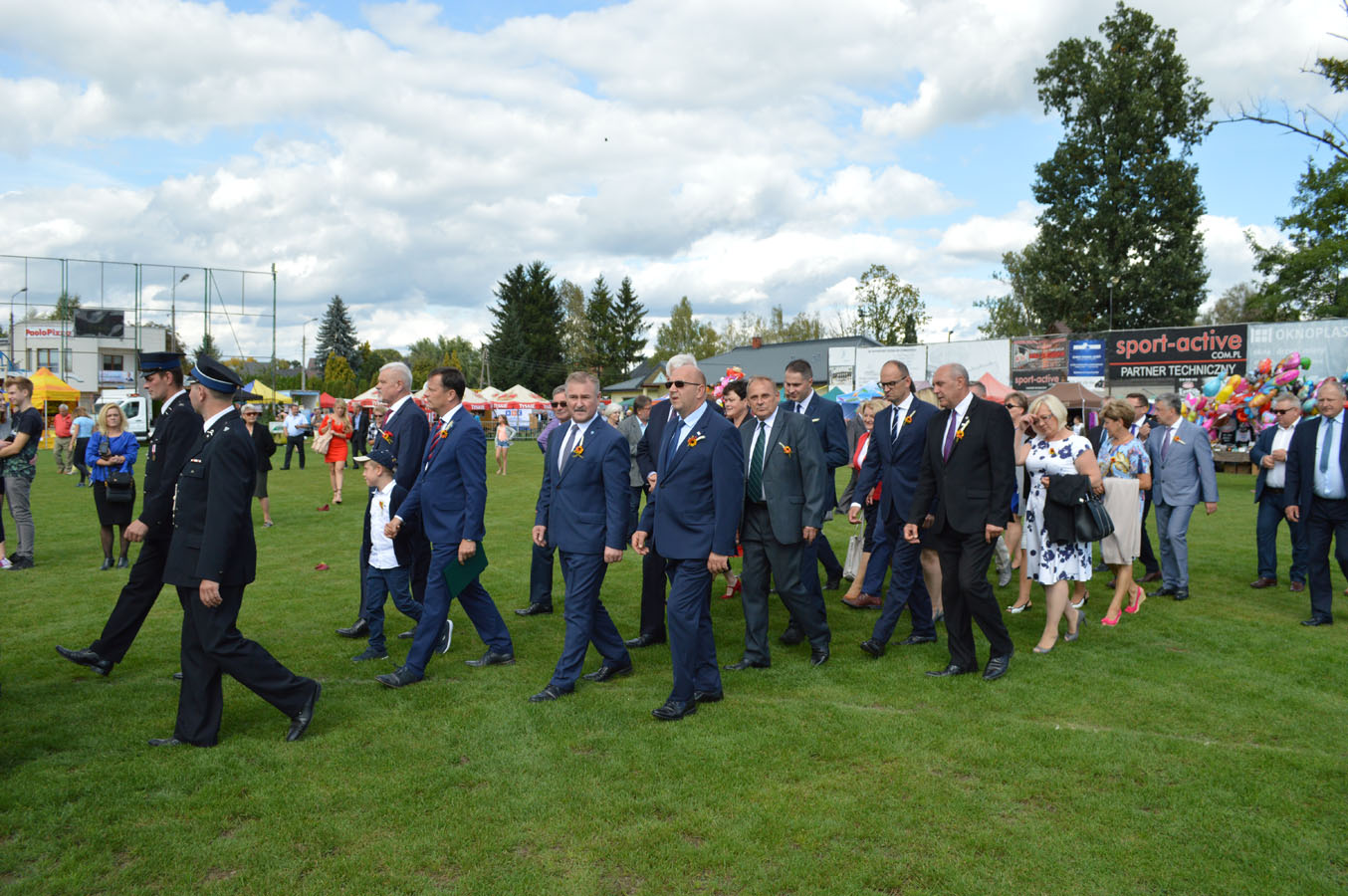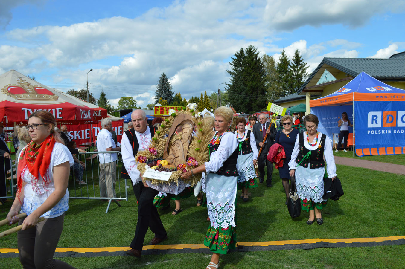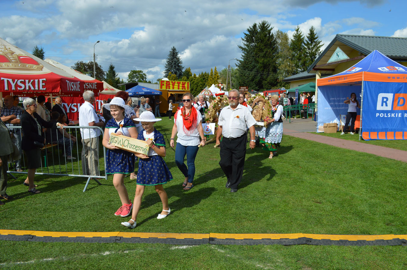 Obchody rozpoczął przemarsz korowodu dożynkowego przy akompaniamencie Młodzieżowej Orkiestry Dętej. W korowodzie przeszli przedstawiciele władz Powiatu Wołomińskiego i Gminy Tłuszcz, Starostowie Dożynek – Anna i Edward Rojeccy, członkowie Klubu Seniora ?Uśmiech Jesieni?, poczty sztandarowe, zaproszeni goście oraz barwne delegacje z wieńcami od Sołectwa Borucza, Koła Gospodyń Wiejskich z Chrzęsnego, Koła Gospodyń Wiejskich z Dąbrówki, Sołectwa Dębe Małe, Sołectwa Jadwisin, Sołectwa Jarzębia Łąka, Sołectwa Jasienica, Towarzystwa Gospodyń Wiejskich Nadbużanki z Kuligowa, Koła Gospodyń Wiejski ?Kalinki? z Miąsego, Sołectwa Postoliska, Koła Gospodyń Wiejskich z Roszczepu, Koła Gospodyń Wiejskich z Równego, Sołectwa Sitki, Sołectwa Sitne, Sołectwa Strachówka, Koła Gospodyń Wiejskich Sulejowianki, Sołectwa Szewnica, Sołectwa Wólka Sulejowska, Sołectwa Starowola, Sołectwa Jaźwie, Sołectwa Dobczyn oraz Koła Gospodyń Wiejskich z Woli Rasztowskiej.