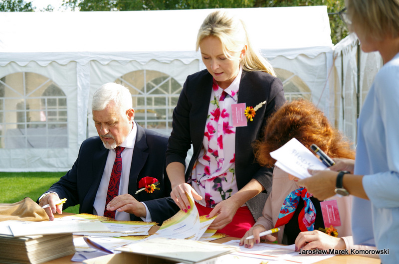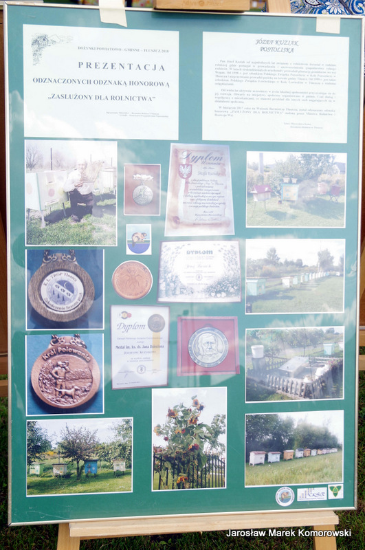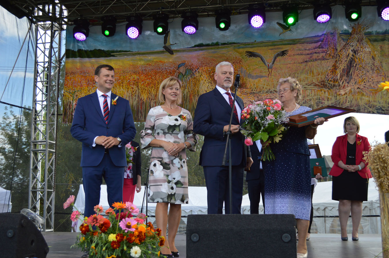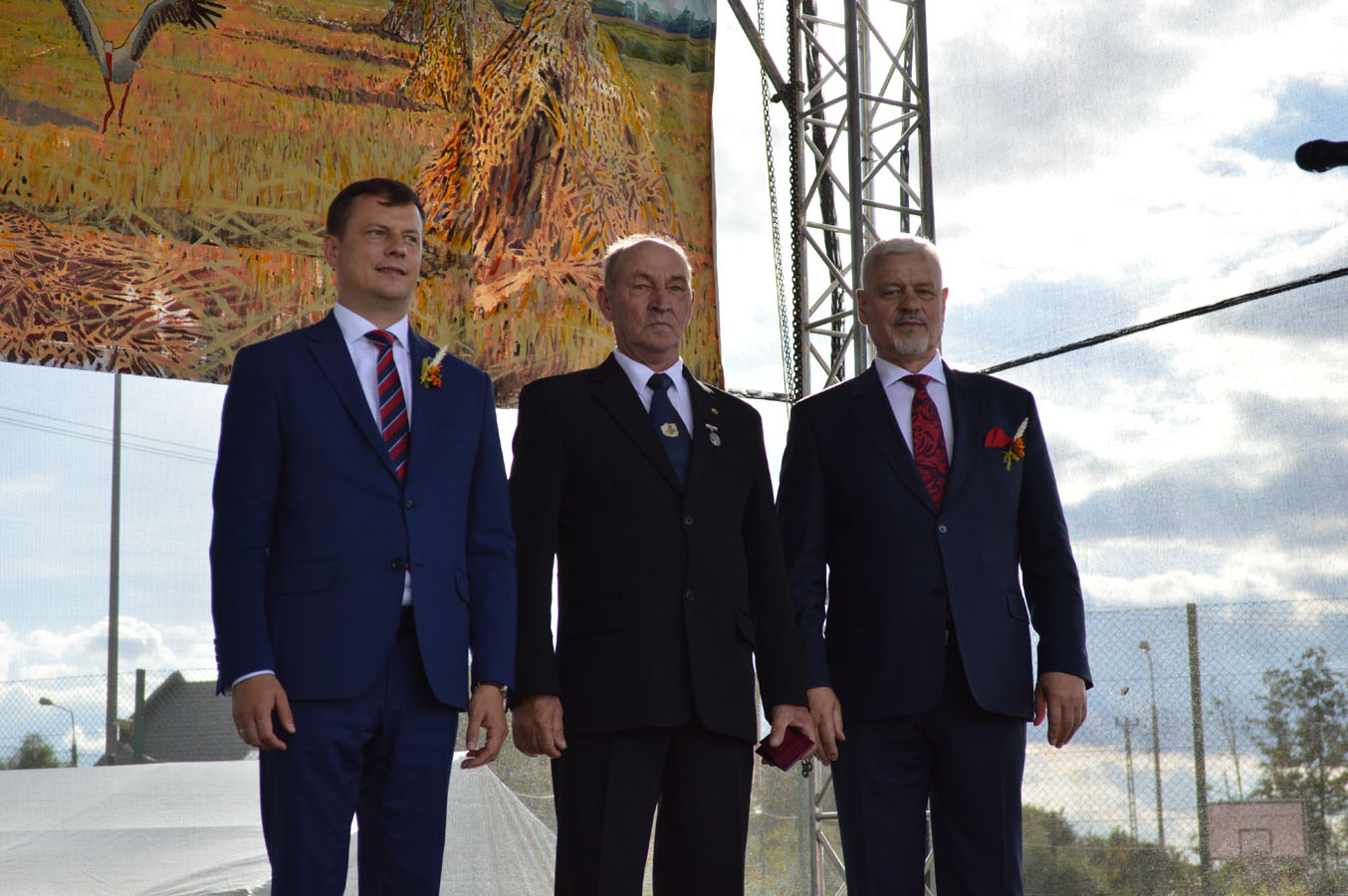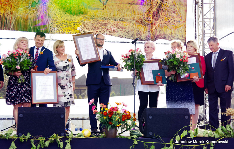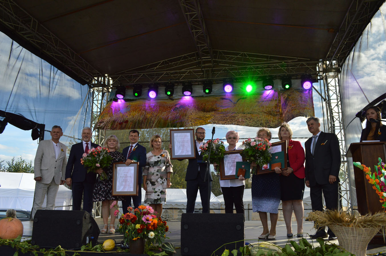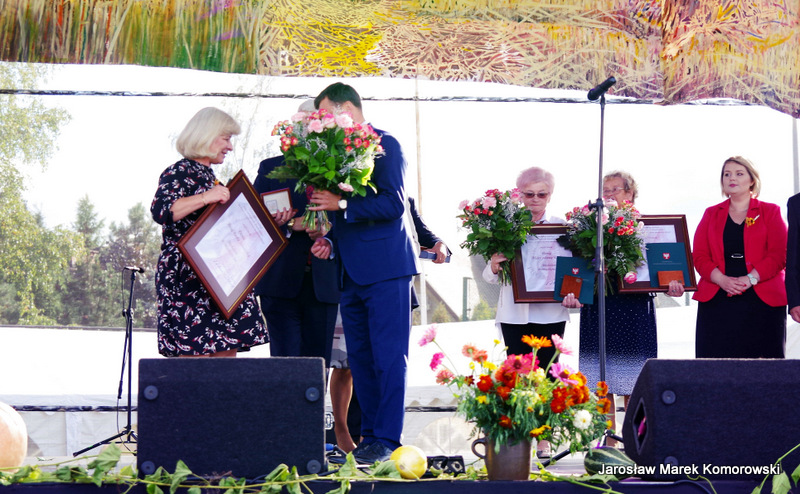 Dożynki są świetną okazją do nadania odznaczeń ?Zasłużony dla Rolnictwa? przez Ministra Rolnictwa i Rozwoju Wsi. Odznakę z rąk Starosty Wołomińskiego Kazimierza Rakowskiego oraz Burmistrza Tłuszcza Pawła Bednarczyka odebrał Józef Kuziak. Wyróżnione zostały również największe i najbardziej produkcyjne gospodarstwa rolne i tym samym ich gospodarze- Grzegorz Kmiołek z Mokrej Wsi, Piotr Stępień z Szymanówka oraz Zbigniew Brzozowski z Kozłów. Z okazji jubileuszu 35-lecia Towarzystwa Przyjaciół Ziemi Tłuszczańskiej prezes Marcin Ołdak odebrał medal Pro Masovia. Oprócz niego medal odebrały Mieczysława Kaska, Apolonia Sasin oraz Anna Jaworska. Przewodnicząca Komisji Kultury i Dziedzictwa Narodowego Sejmiku Województwa Mazowieckiego Bożena Żelazowska wręczając odznaczenie powiedziała, że wielokrotnie gościła w Muzeum Ziemi Tłuszczańskiej i bardzo dziękuję wszystkim członkom za pracę na jego rzecz.