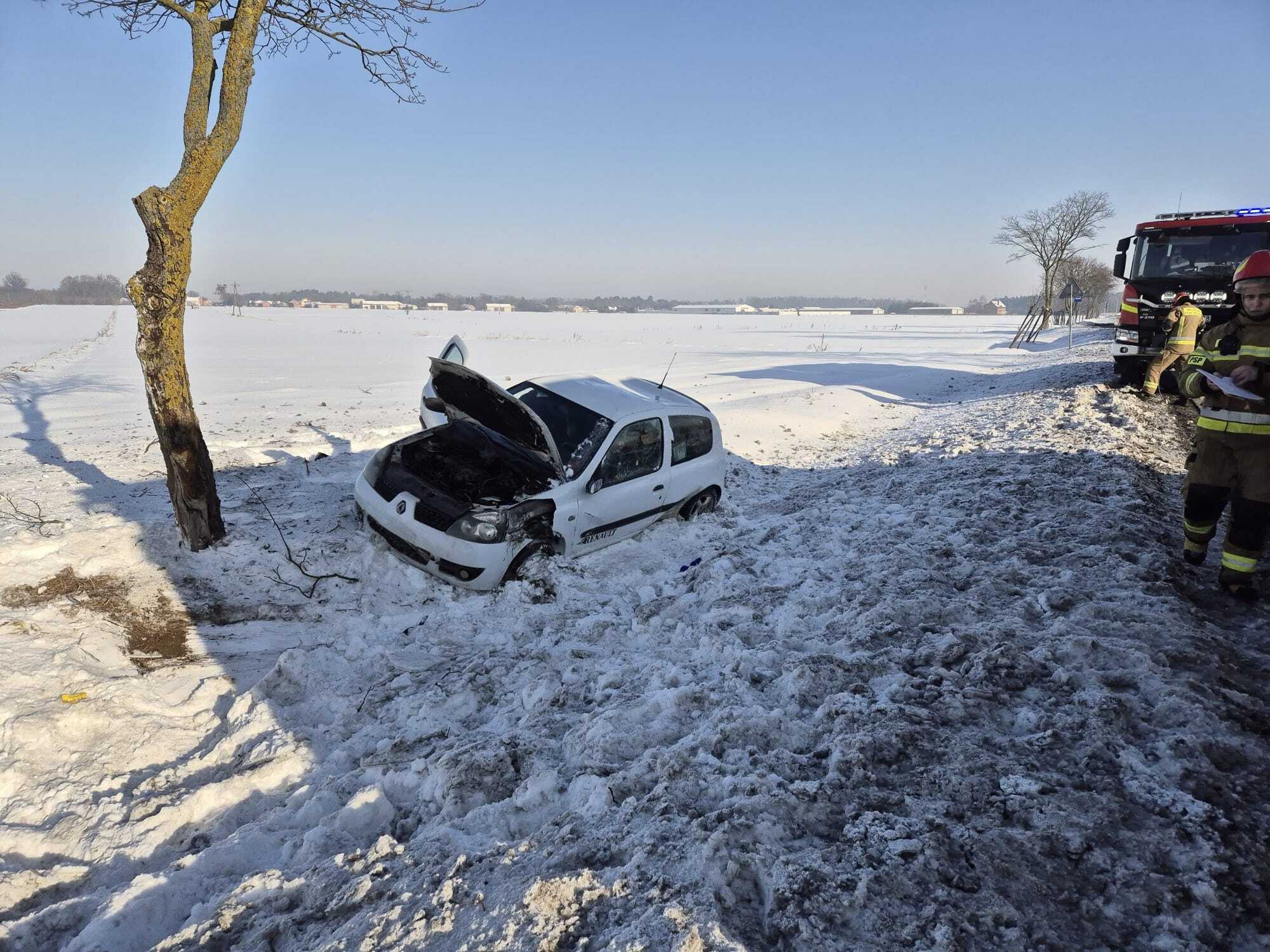Jak wynika ze wstępnych ustaleń, do zdarzenia doszło w trudnych warunkach atmosferycznych. Zalegający na jezdni śnieg oraz oblodzenie mogły znacząco wpłynąć na utratę panowania nad pojazdem. Siła uderzenia była na tyle duża, że przód samochodu został poważnie uszkodzony, a pojazd osiadł w głębokim rowie tuż przy drzewach.