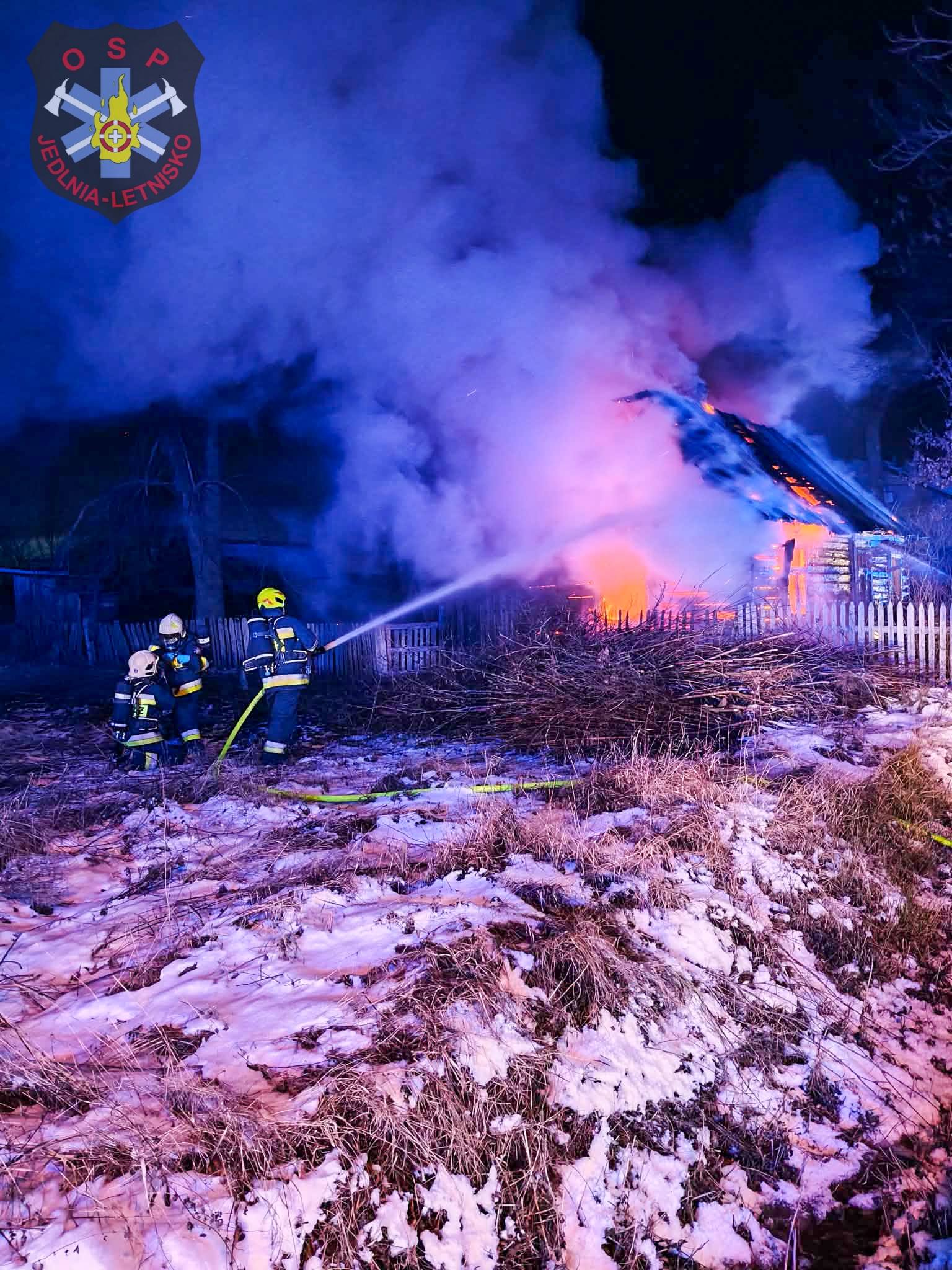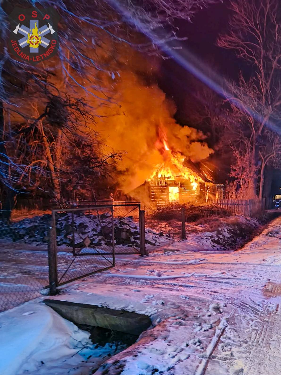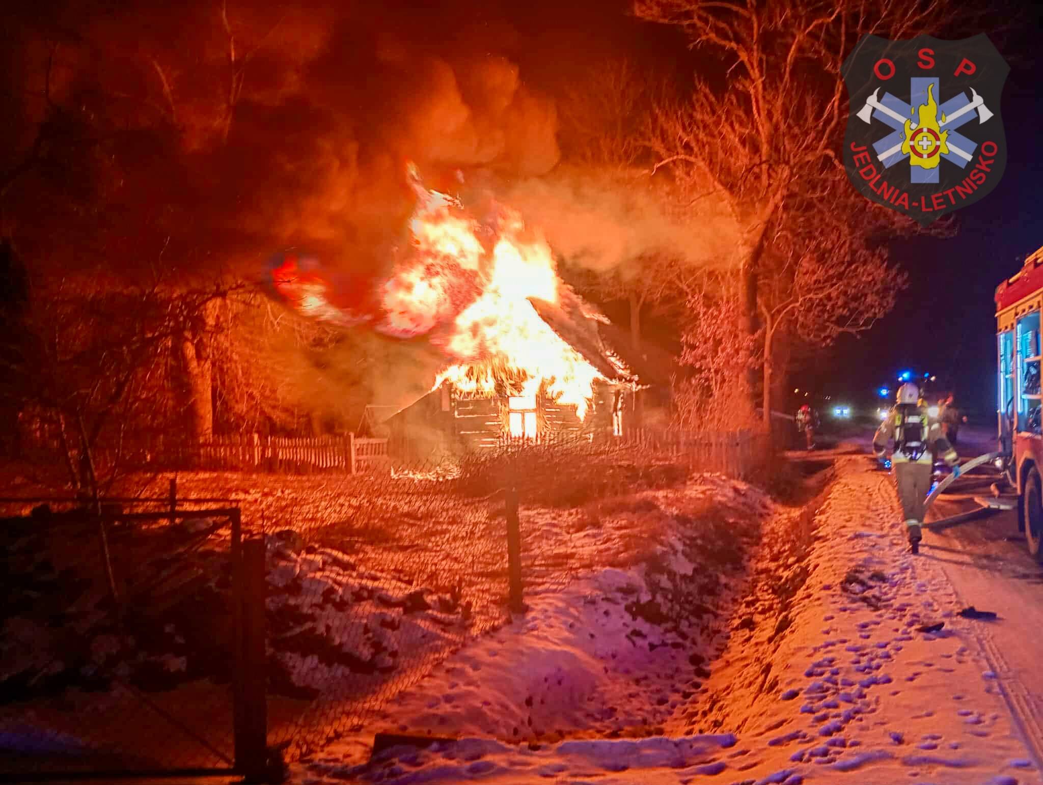 Drewniany dom jednorodzinny w całości stanął w płomieniach. Dramatyczna walka z ogniem.