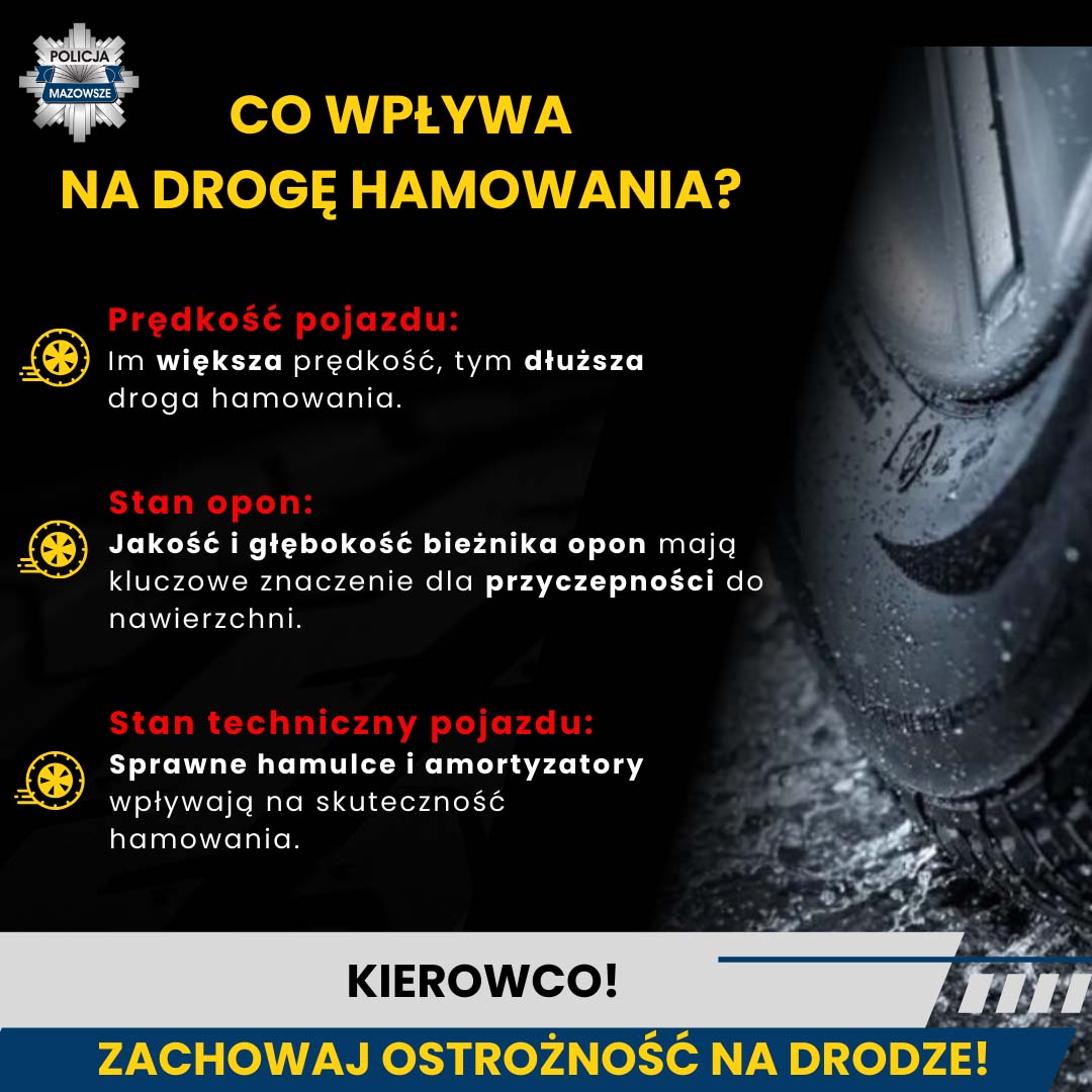 - Prędkość pojazdu: Im większa prędkość, tym dłuższa droga hamowania. Przy śliskiej nawierzchni ten efekt jest jeszcze bardziej zauważalny, dlatego zaleca się zmniejszenie prędkości w trudnych warunkach drogowych.