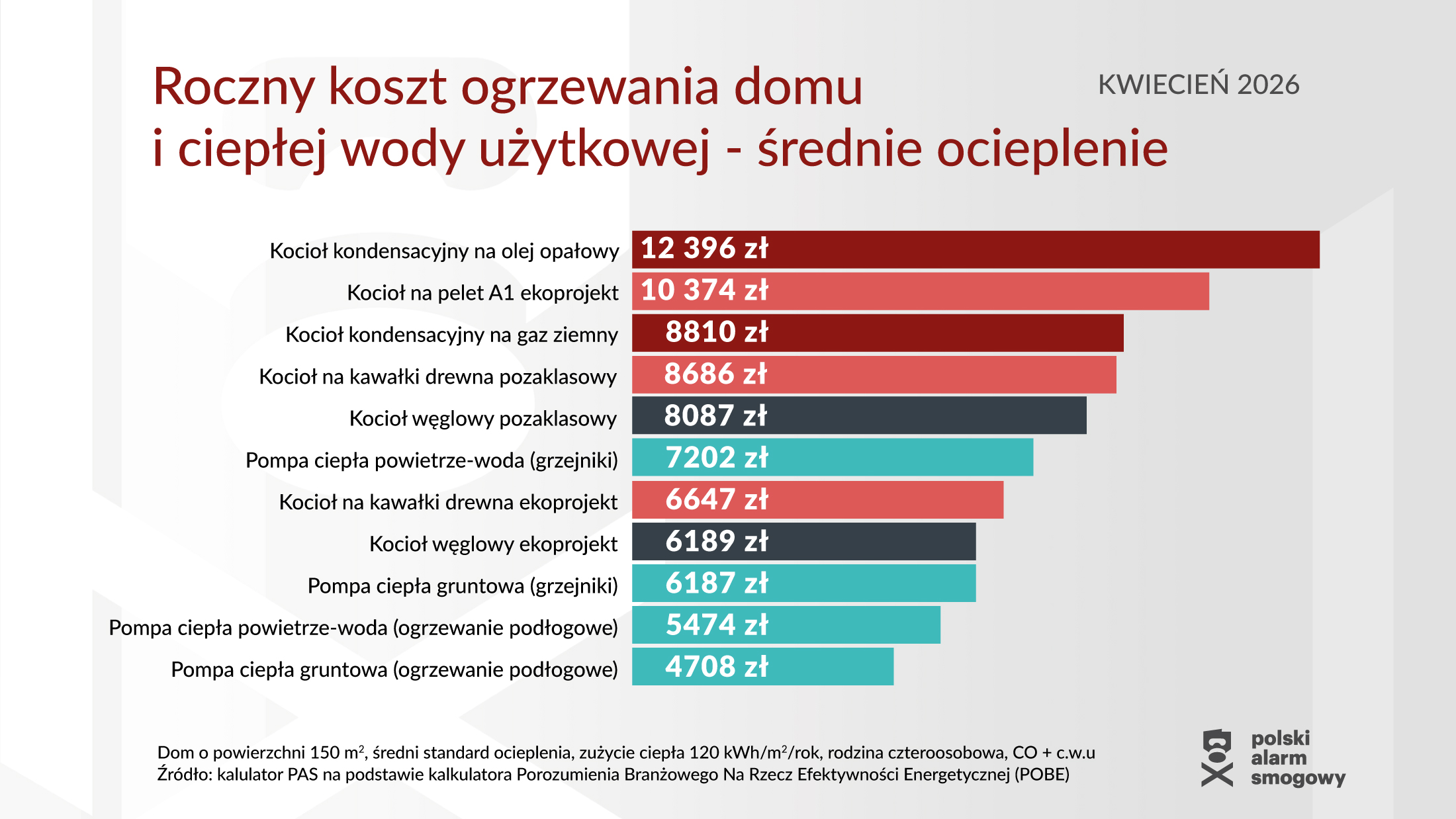 Link do kalkulatora TUTAJ: https://polskialarmsmogowy.pl/kalkulator-kosztow-ogrzewania/Raport cen paliw stałych do pobrania TUTAJ: https://krakowskialarmsmogowy.pl/wp-content/uploads/2026/04/Raport-Ceny-paliw-stalych-kwiecien-2026.pdf
