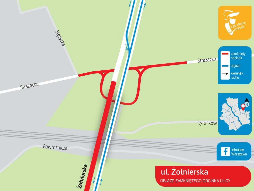 Wykonawca przebudowy ul. Żołnierskiej skupi się teraz na pracach na węźle z ul. Strażacką. Od piątku, 26 kwietnia od ok. godz. 23.00 do poniedziałku, 29 kwietnia, rano będzie układał ostatnie warstwy nawierzchni na budowanym wiadukcie nad torami kolejowymi oraz jezdni przebiegającej pod nim. Na potrzeby tych prac ul. Strażacka zostanie zamknięta pomiędzy ul. Stężycką a Zesłańców Polskich. Ruch w ciągu ul. Żołnierskiej będzie odbywał się bez utrudnień. Objazdy zamkniętej ulicy zostaną poprowadzone ulicami Marsa ? Chełmżyńska lub I. Paderewskiego ? Czwartaków.