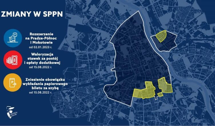 2 stycznia 2023 r. do strefy zostaną włączone nowe obszary na Pradze-Północ oraz Mokotowie. Wcześniej, dzięki nowoczesnemu systemowi e-kontroli, nie będzie już obowiązku wkładania za szybę biletu parkingowego. Zostaną też zwaloryzowane stawki opłat za postój, dzięki czemu SPPN znów będzie spełniać swoją funkcję ? zapewni rotację na miejscach postojowych. Ratusz oczekuje teraz na uprawomocnienie się uchwały.
